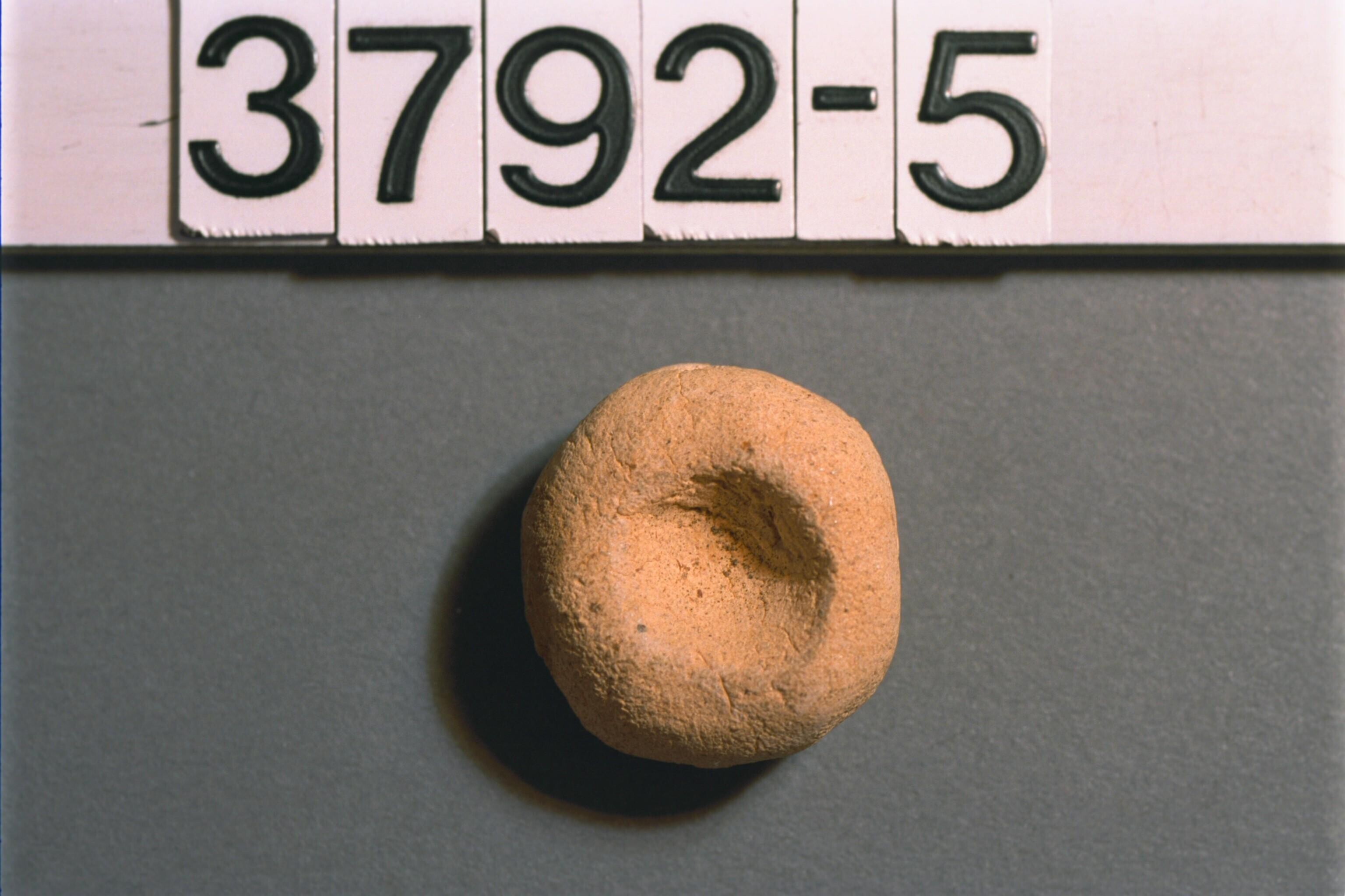 Oorknop van opgerold pandanblad, behorend bij een paar