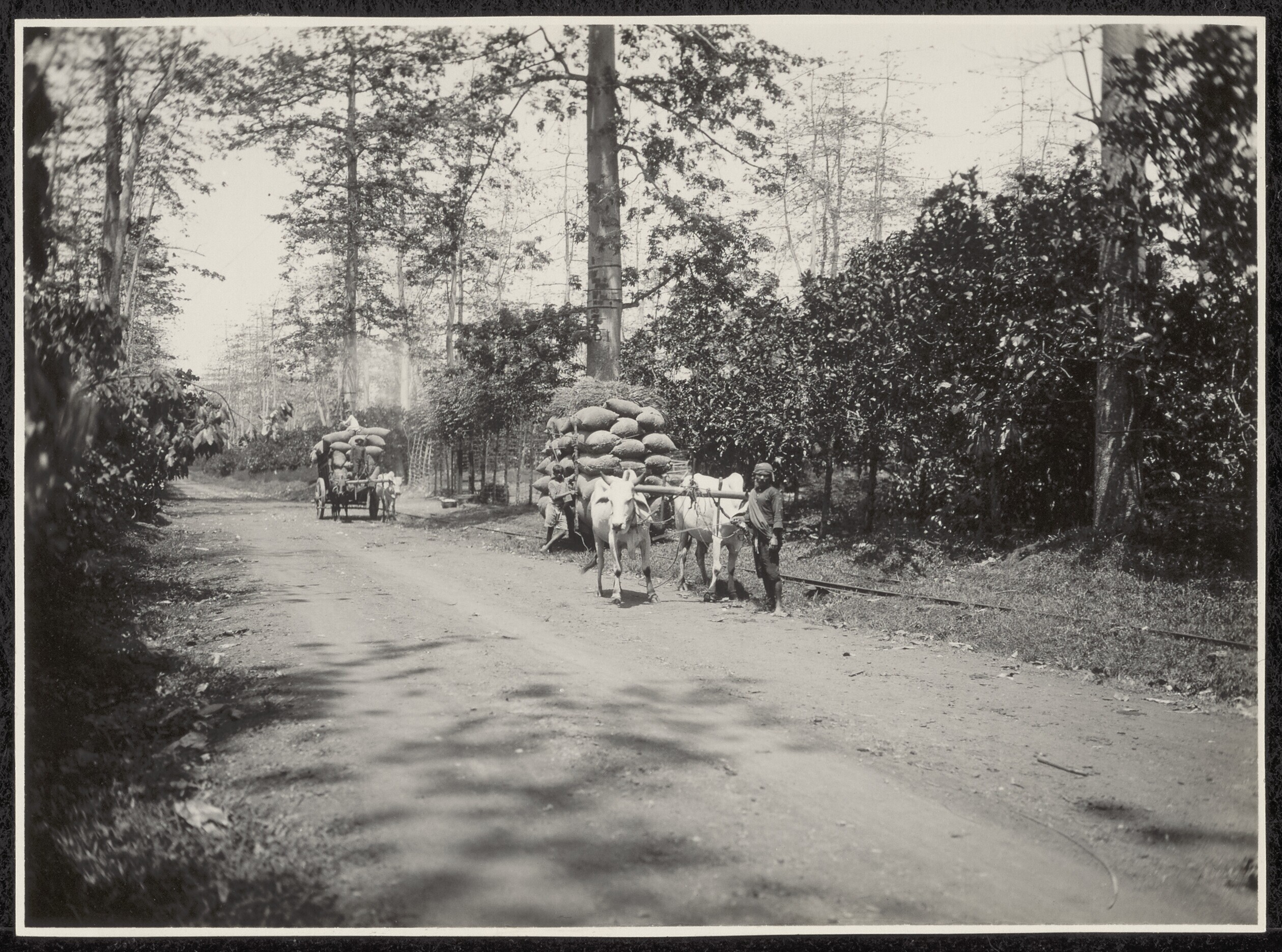 Transport per spoorbaan, met door runderen voortgetr...