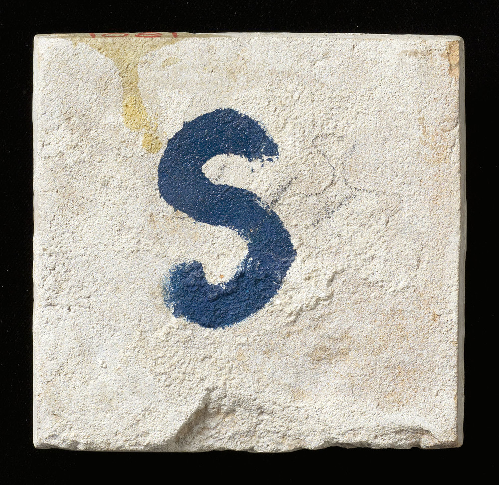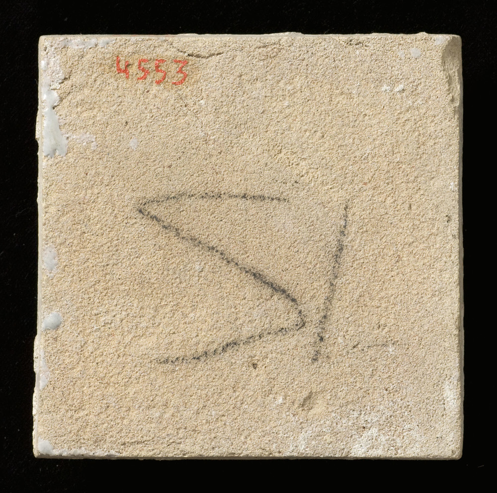 Tegel in tinglazuur, voorstellende een kunstenmaker ...