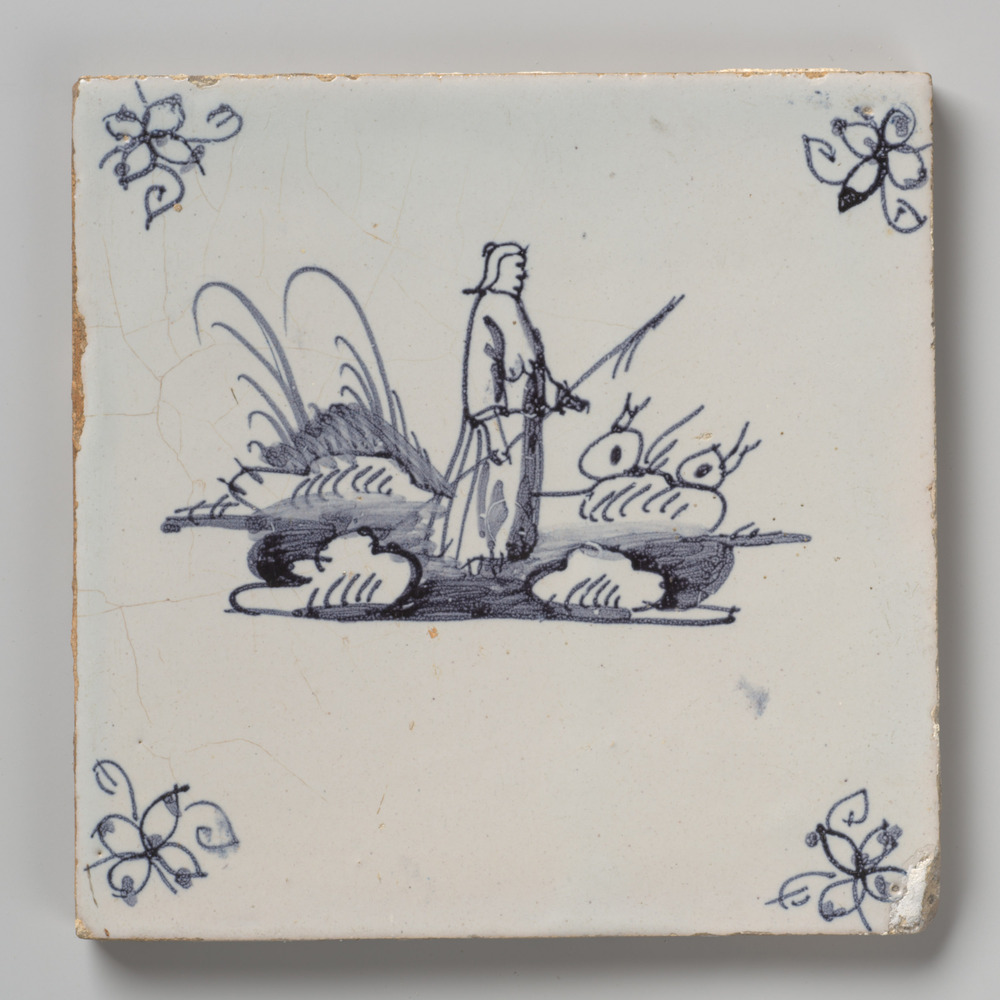 Tegel van keramiek, tinglazuur, voorstellende herder...