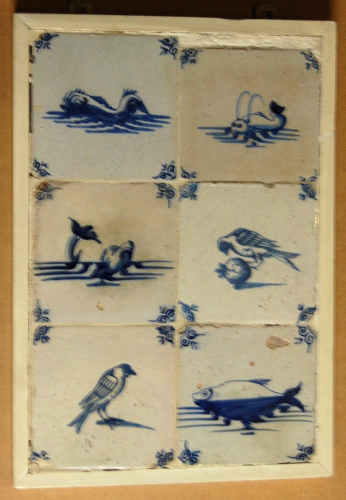 Tegelveld van keramiek, tinglazuur, voorstellende ee...