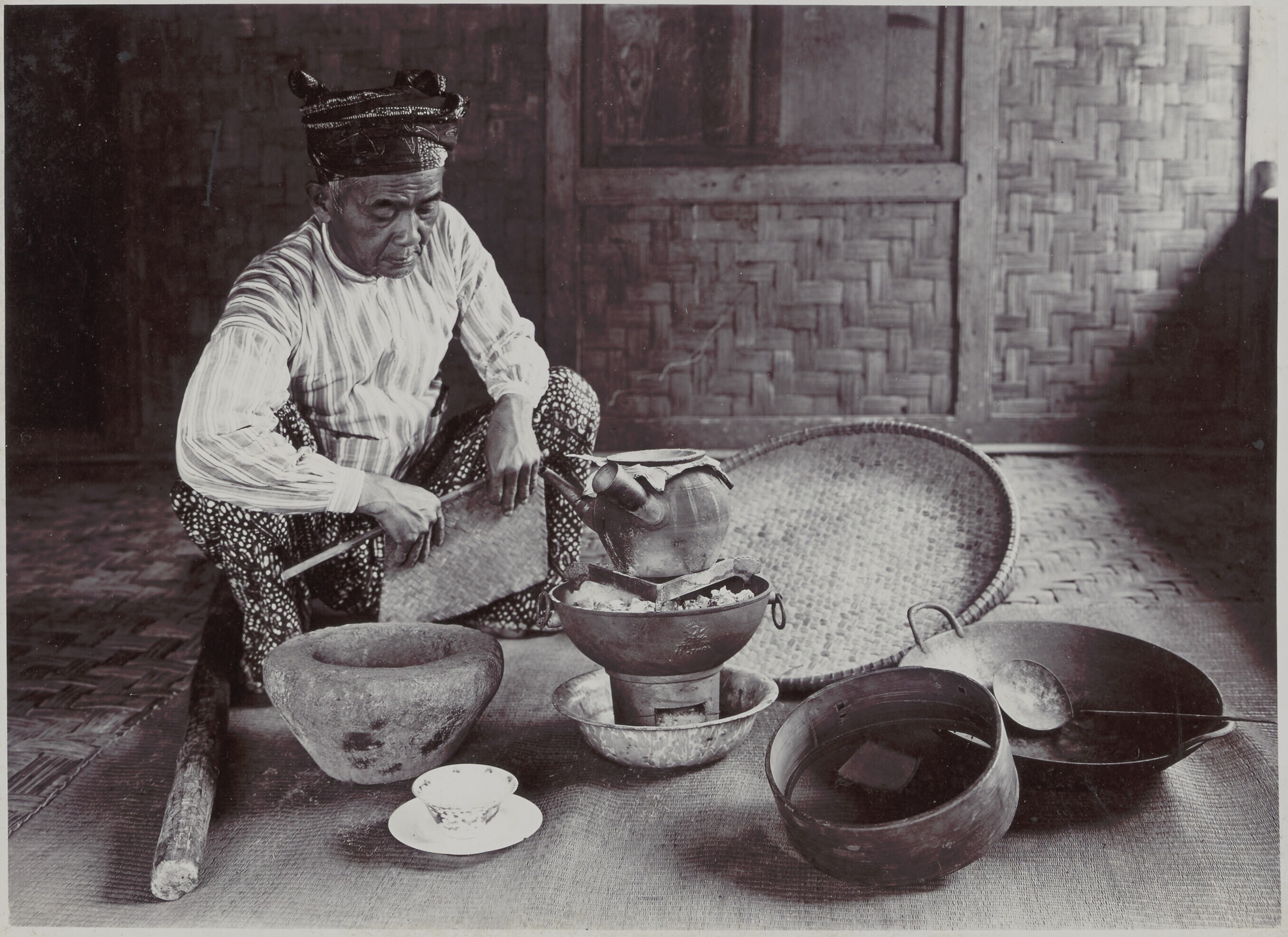 Een dukun tijdens de bereiding van zijn geneesmiddelen