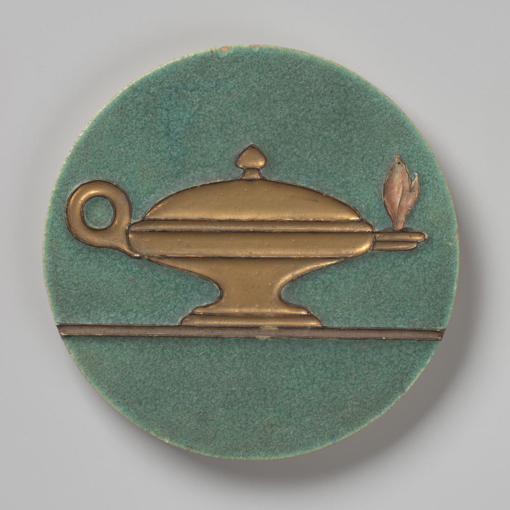 ronde tegel van aaredwerk in cloisonné, voorstellend...