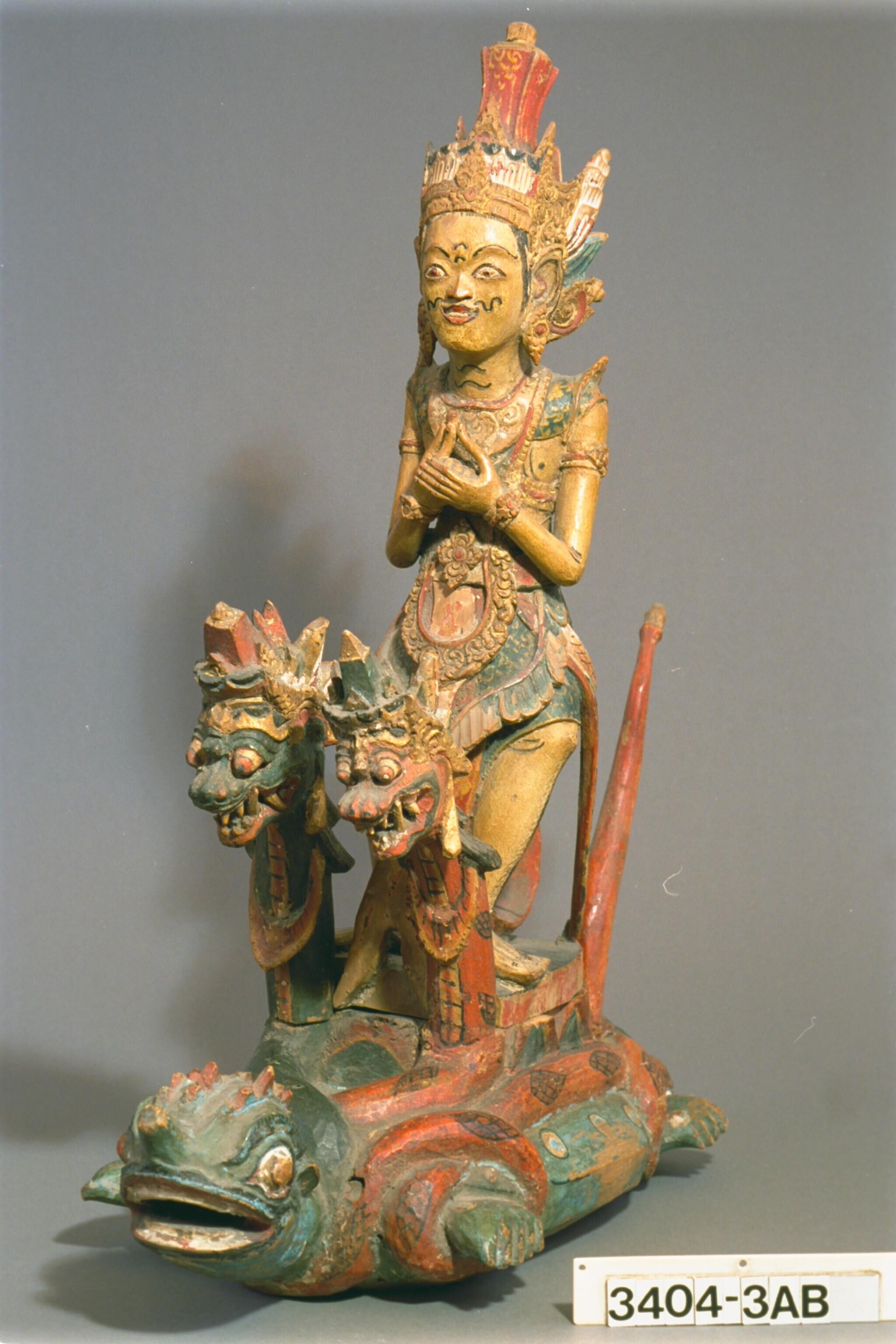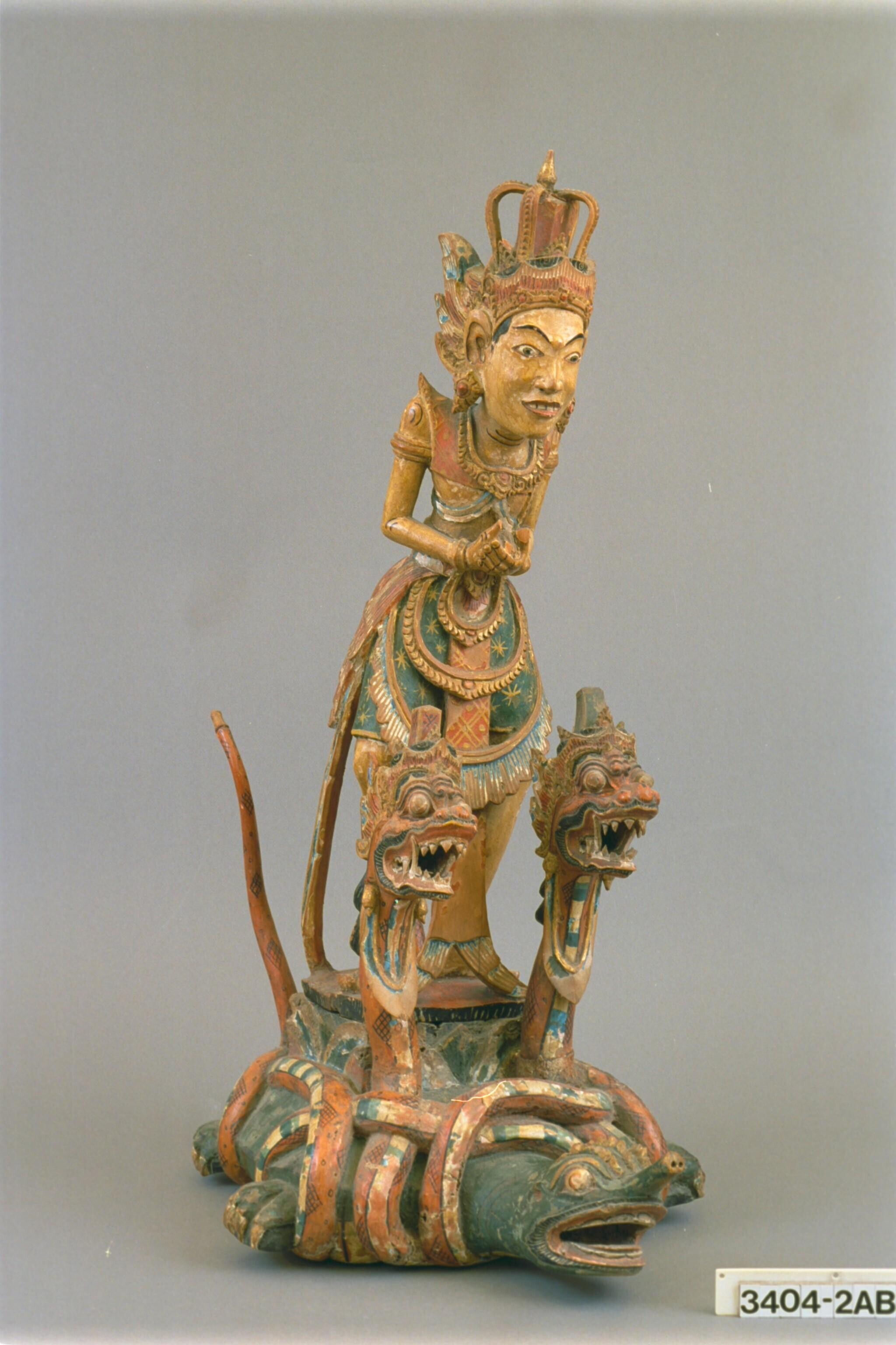 Houten beeld van Wisnu op zijn rijdier Garuda