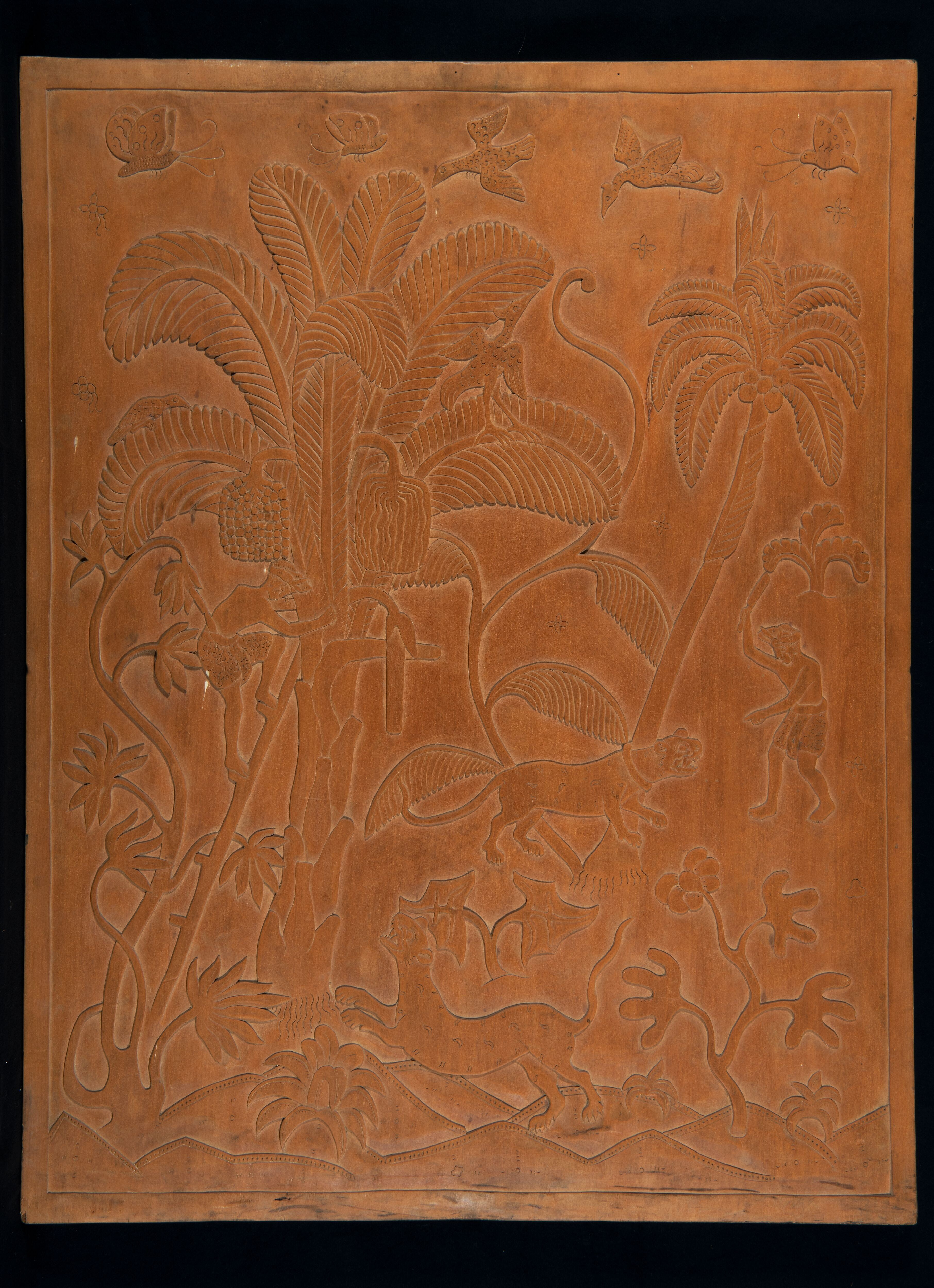 Houtsnijwerk op paneel, voorstellend een tafereel ro...