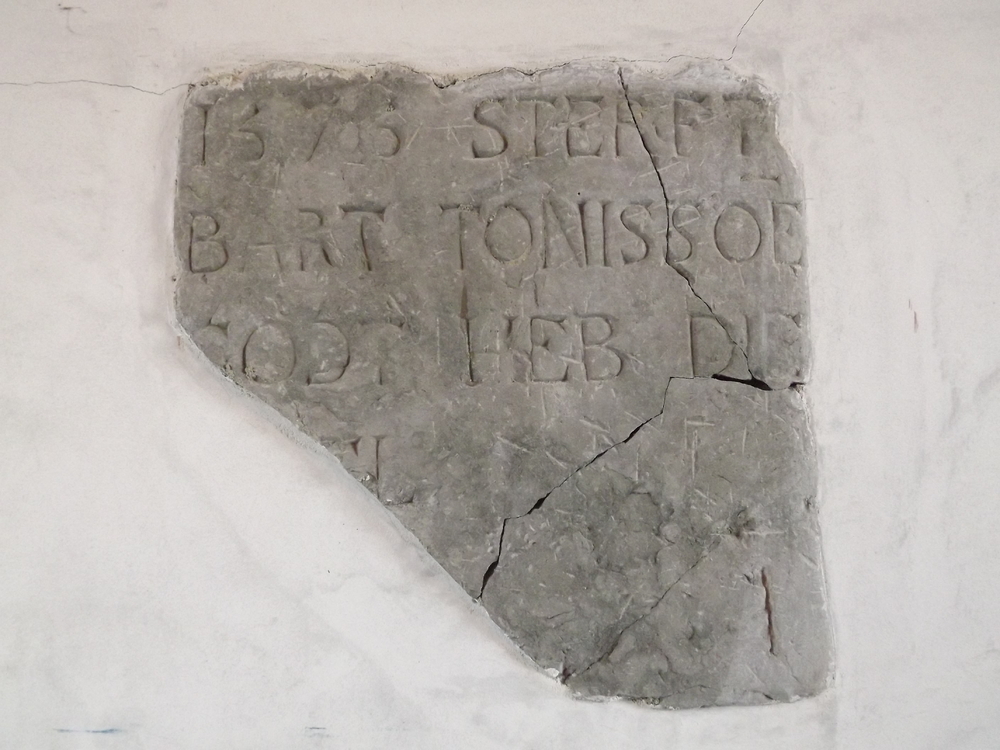 Gedenksteen van hardsteen met inscriptie '1573 steft...