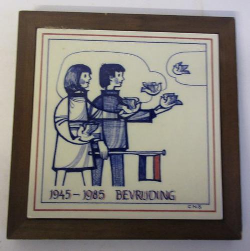 Tegel 25 jaar bevrijding N.V.E.G. Nederlandse leeuw