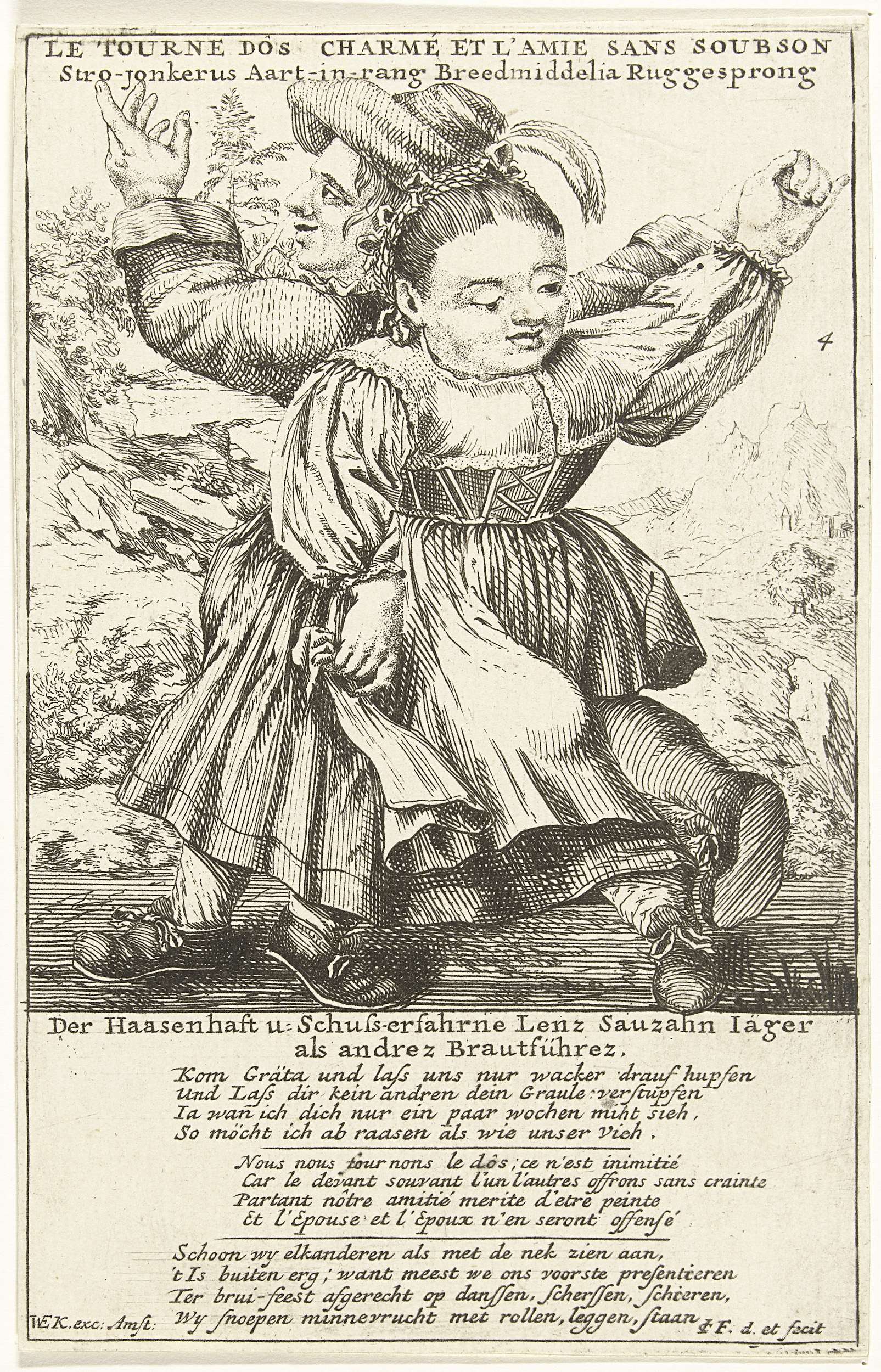 Dansend paar kleine mensen, ca. 1720