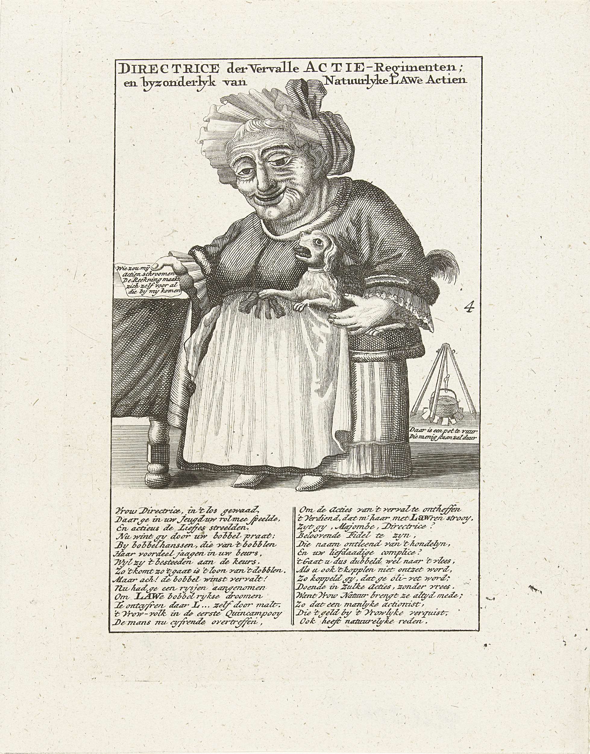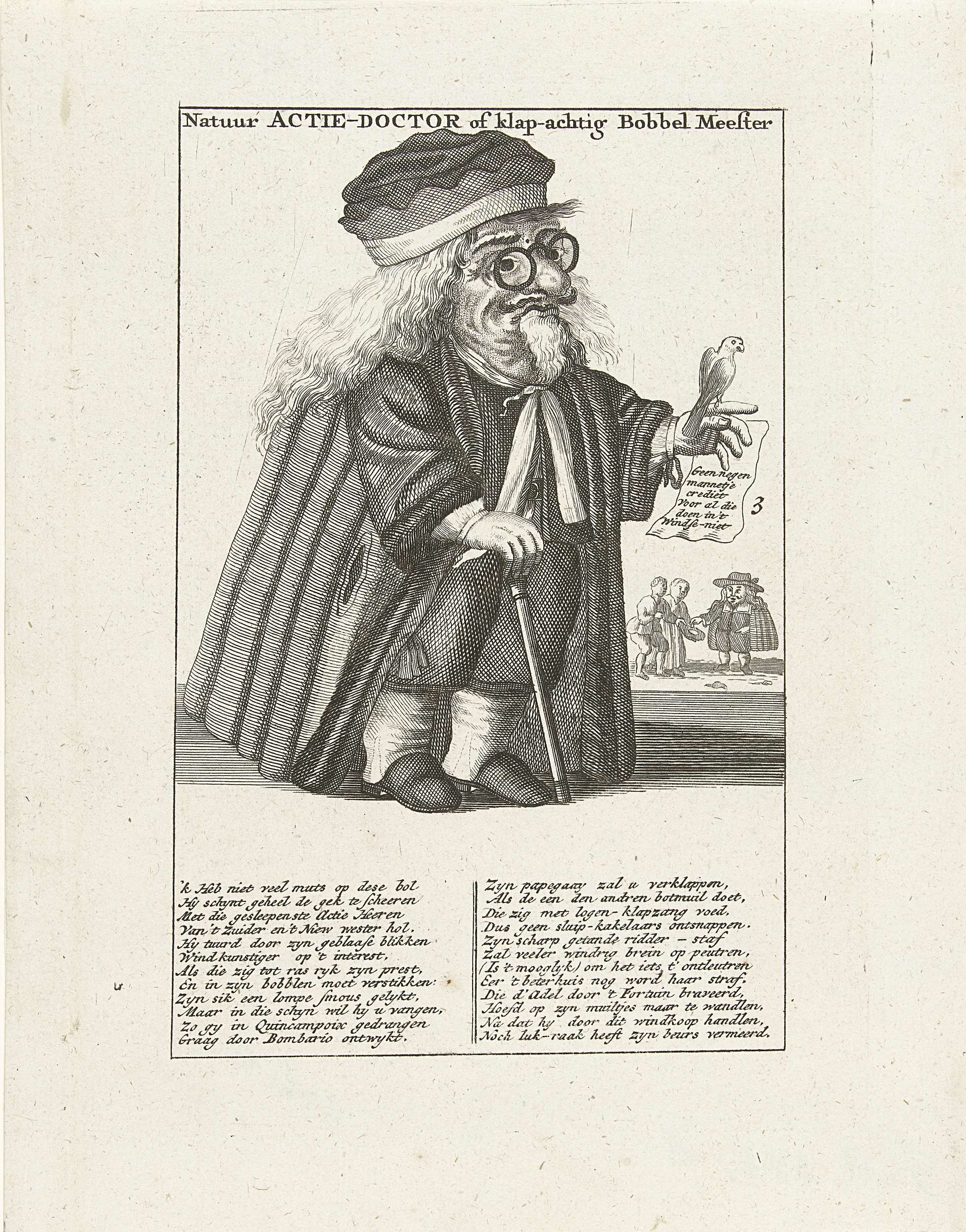 Karikatuur van kleine mens en de windhandel, 1720