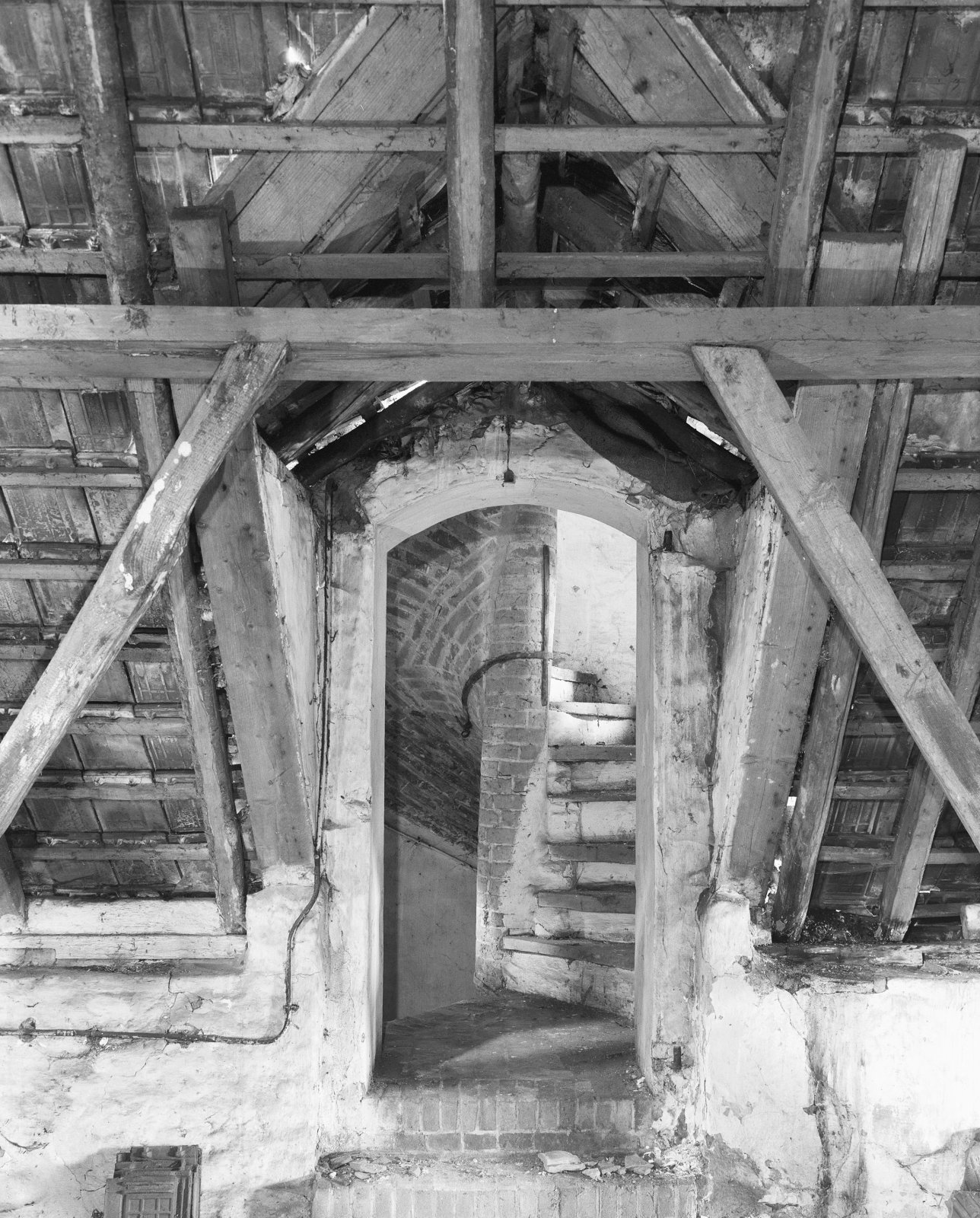 Interieur, zicht op de wenteltrap in de traptoren va...