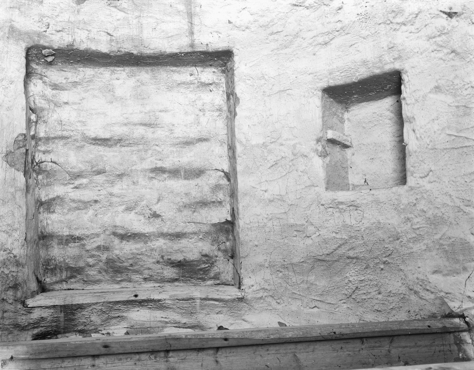 Interieur, detail muur in de torenkamer