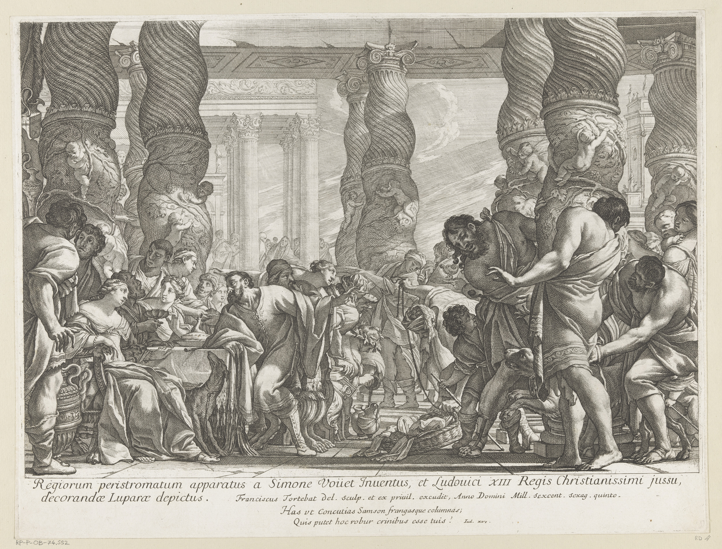 Simson wordt naar een pilaar geleid in de tempel van...