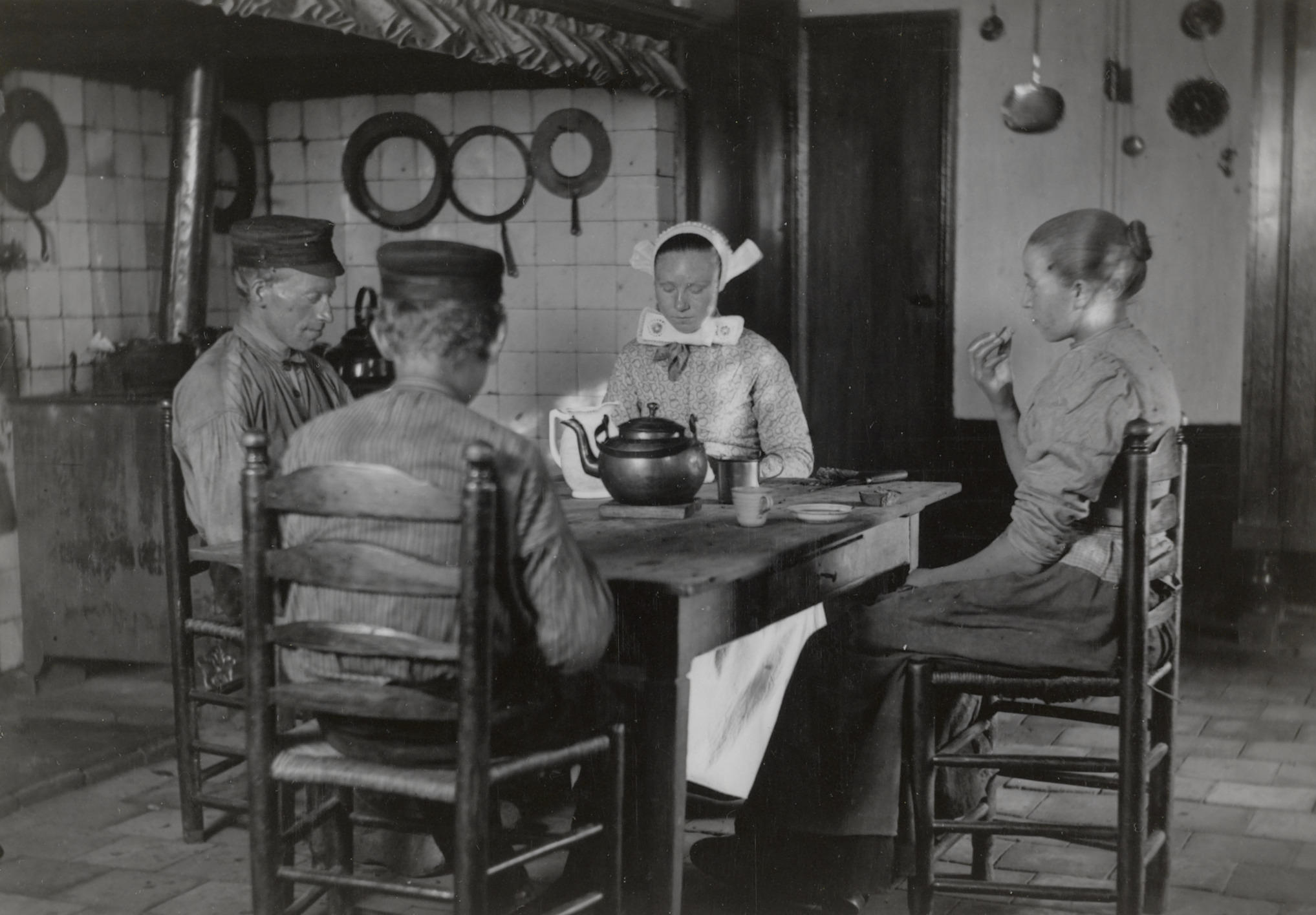 Keukeninterieur, Den Ham, 1899 (zwart-wit foto)