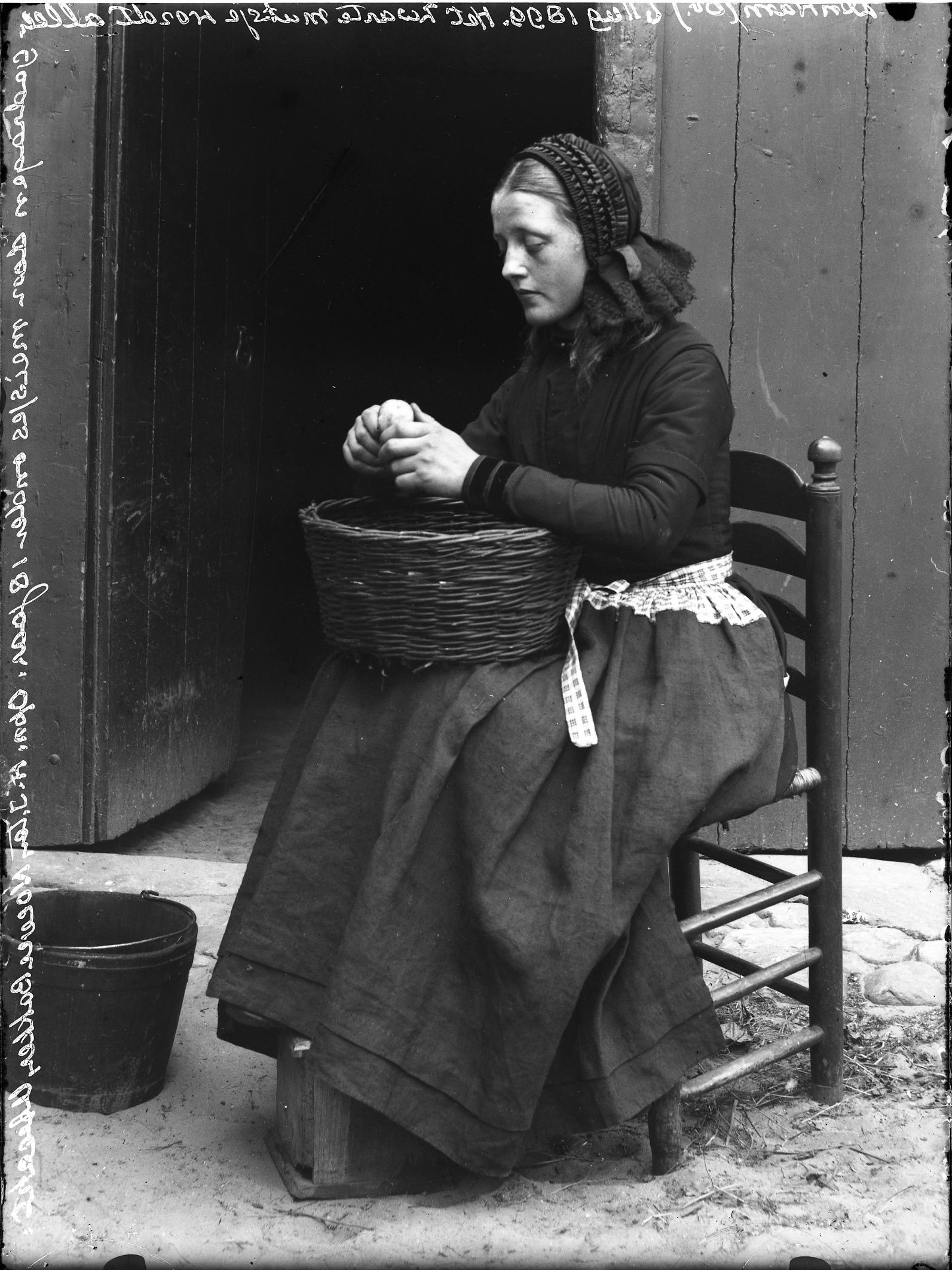 Meisje in werkdracht, Den Ham, 1899 (zwart-wit negat...