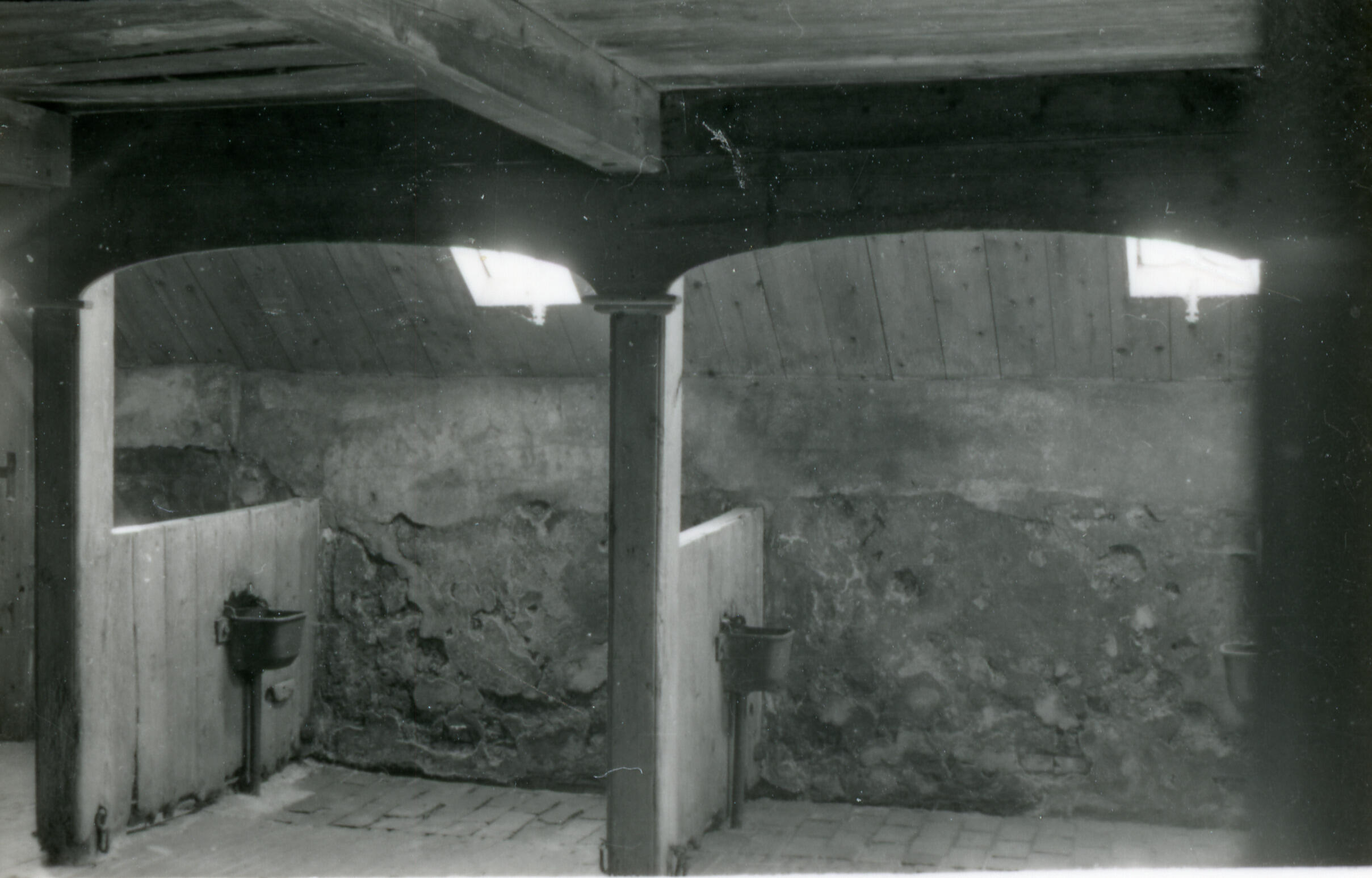 Twee stalplaatsen in een koeienstal, Warffum, 1939 (...