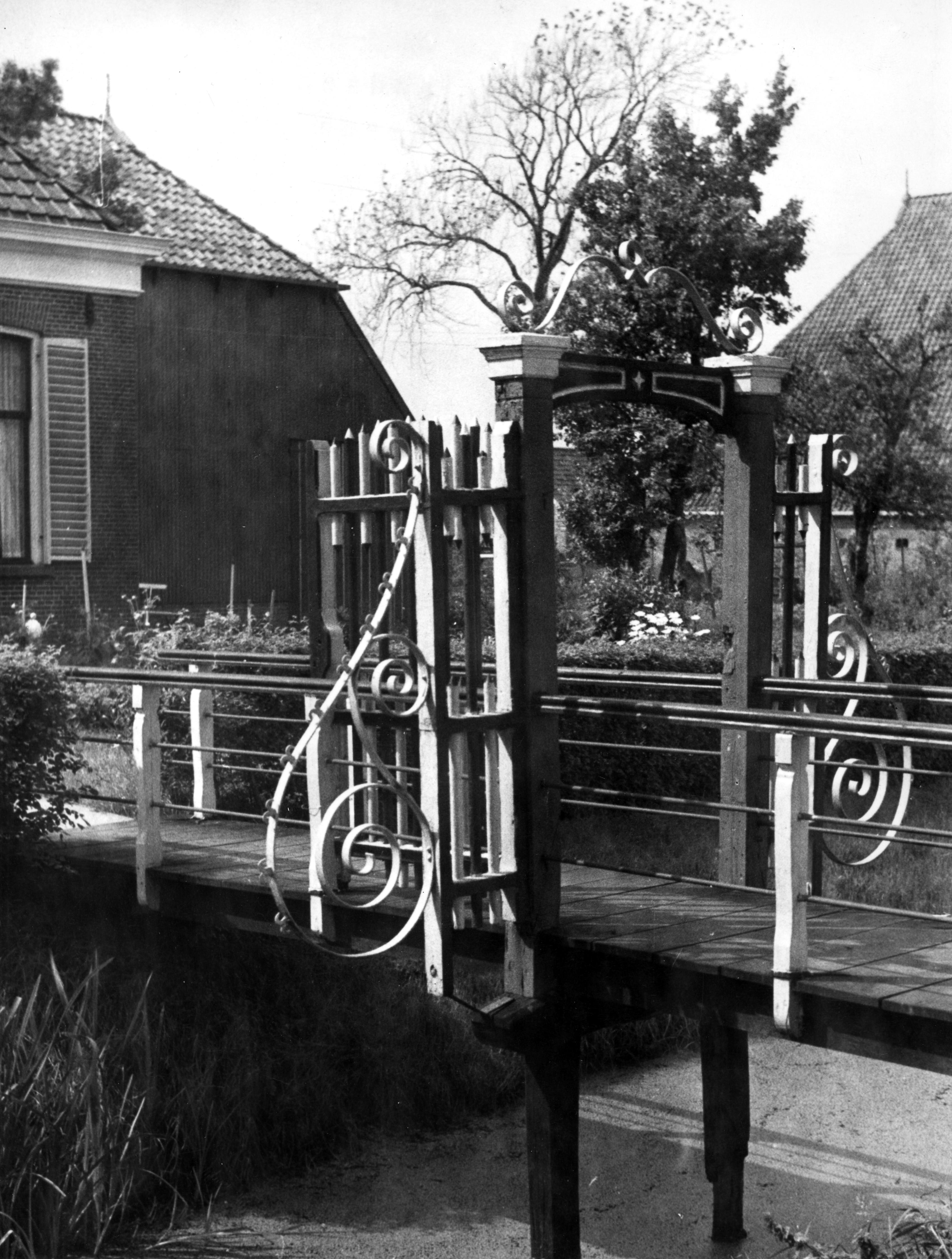 Brug met toegangspoort, Lippenwoude, 1942 (zwart-wit...
