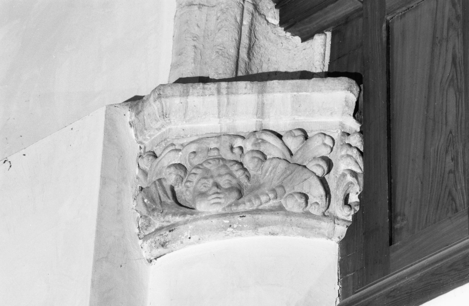 Interieur, kapiteel tegen de zuidzijde van de toren,...