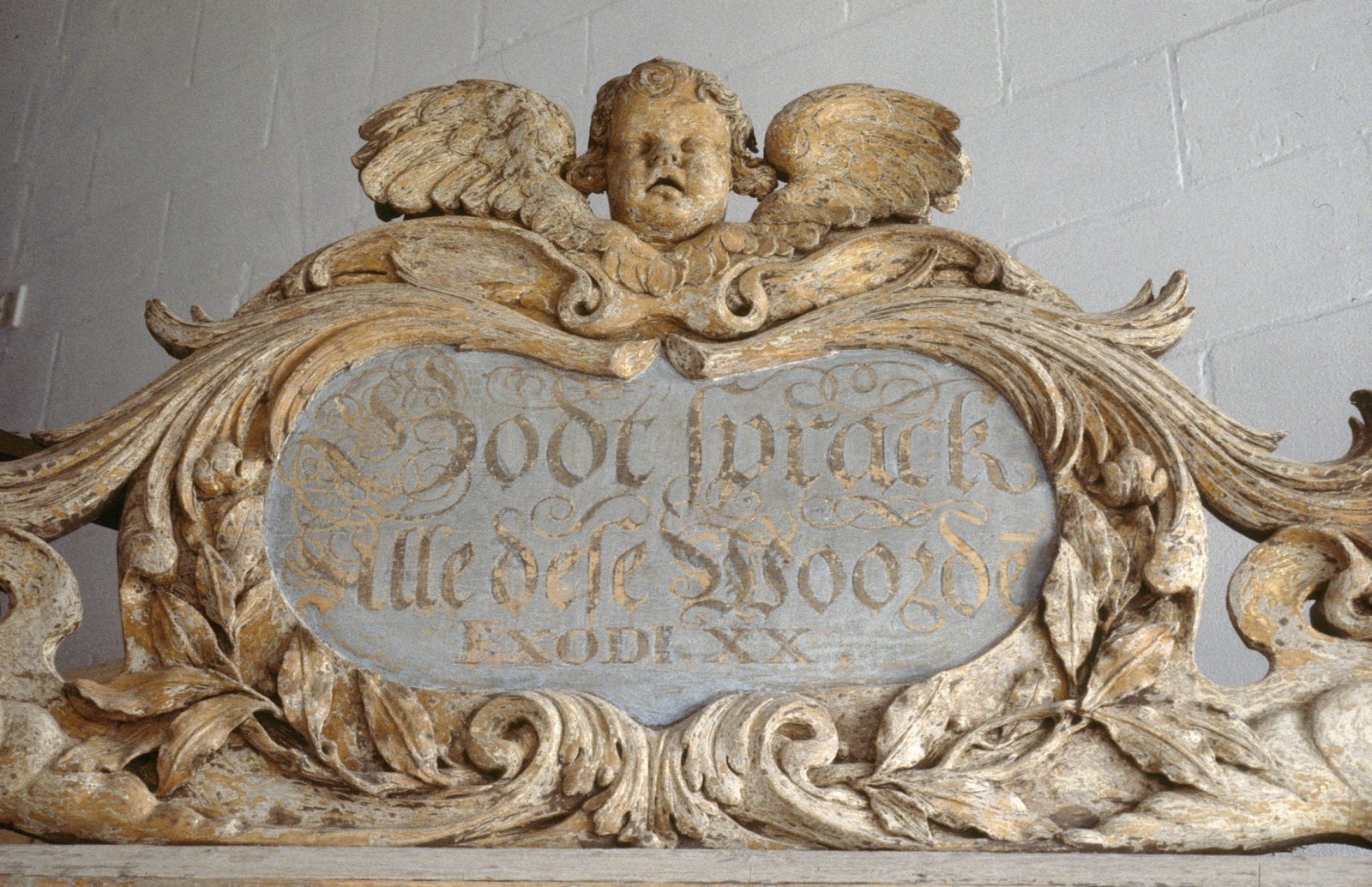 Interieur Hervormde kerk, kerkbord met naamlijst der...