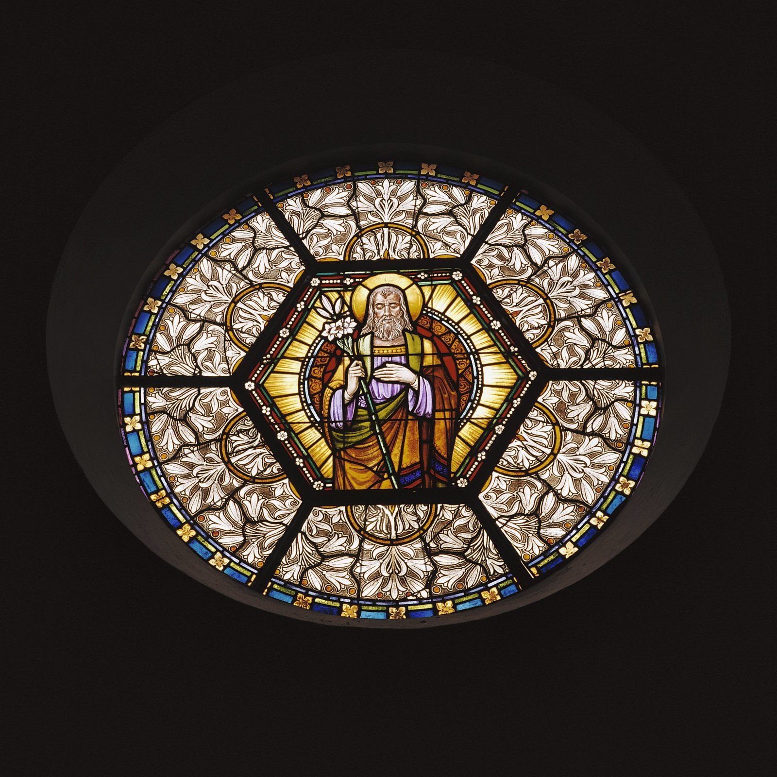 Interieur, gebrandschilderd glas, raam 21: "Mozes bi...