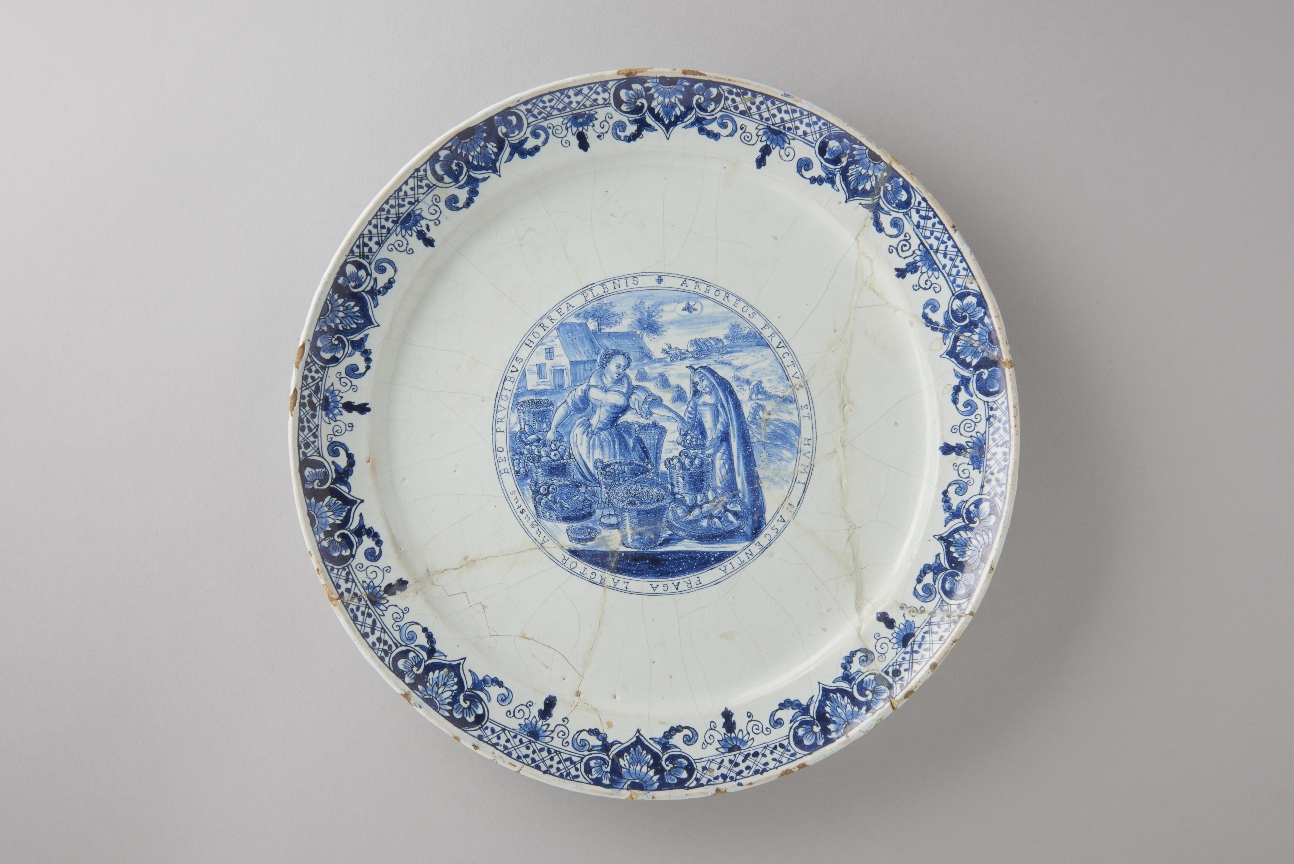 Wandtegel met afbeelding vrouw met juk en emmers, 16...