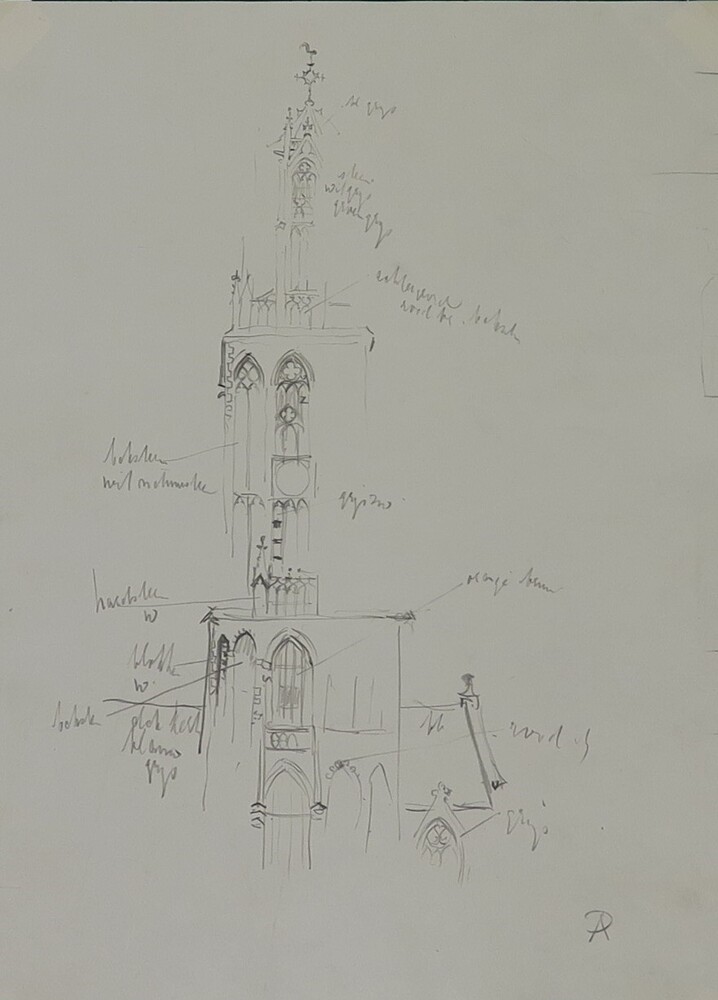 Buurkerkhof met Domtoren, voorstudie boekillustratie...