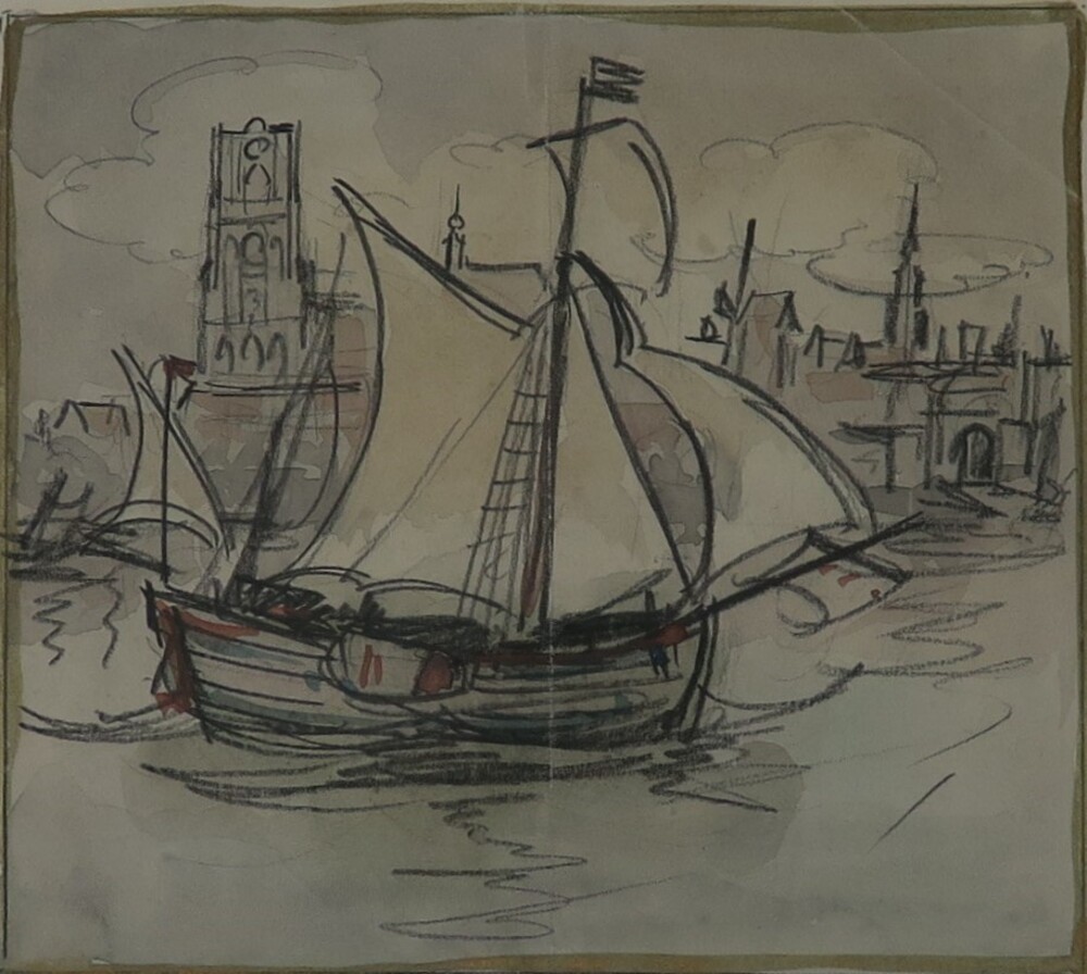 Zeilschip, voorstudie kalenderplaat ‘Dordrecht, Merw...