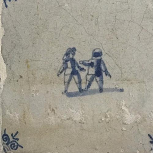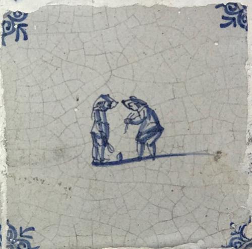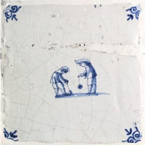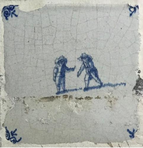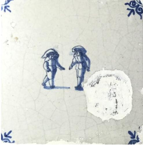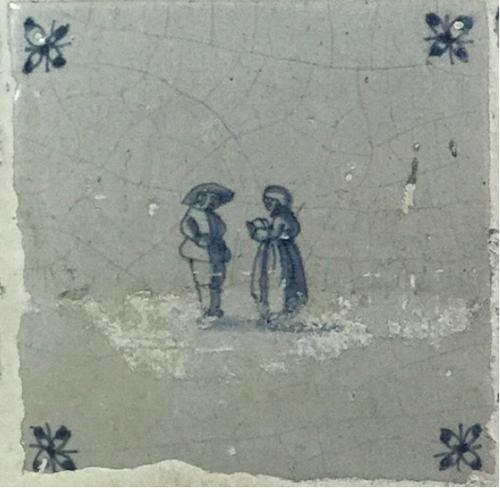 Tegel van aardewerk met tinglazuur voorstellende ? -...