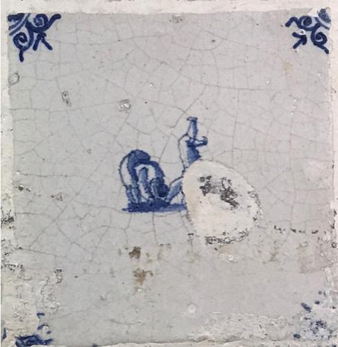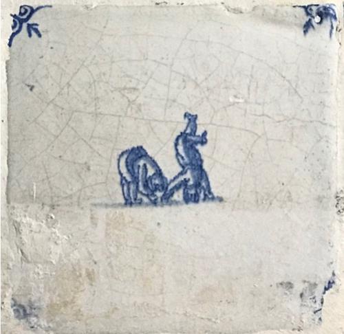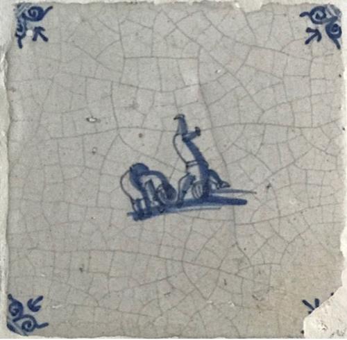 Tegel van aardewerk met tinglazuur voorstellende zui...
