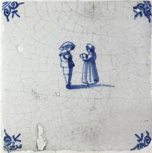 Tegel van aardewerk met tinglazuur voorstellende ste...