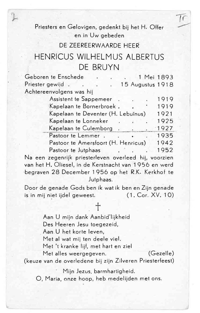 bidprent voor Henricus Wilhelmus Albertus de Bruyn. ...