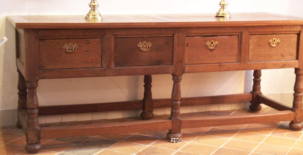 tafel van eikenhout met vier laden of kleppen, afkom...