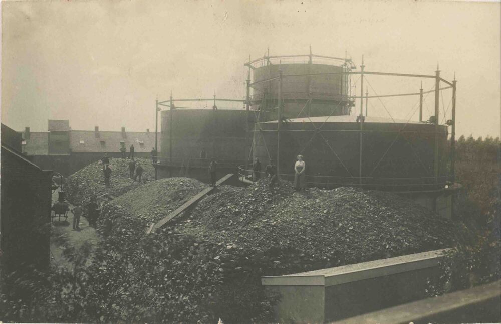 Foto, voorstellende de gasfabriek aan de Stationsweg...