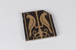 Zwarte tegel met decor van twee crèmekleurige vogels