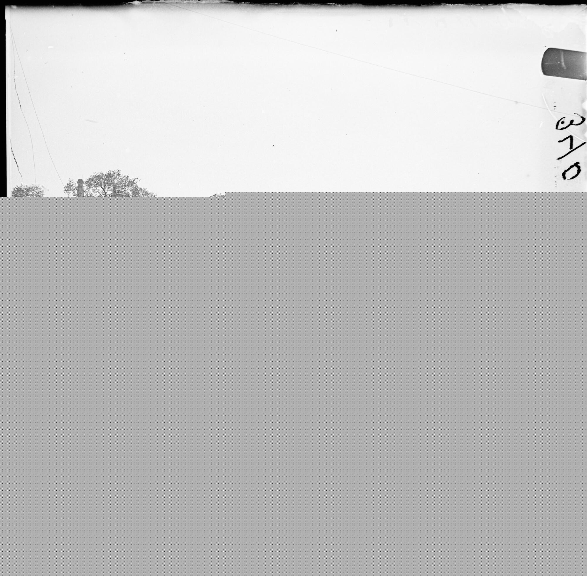 Glasnegatief van een stadsgezicht met een houten oph...