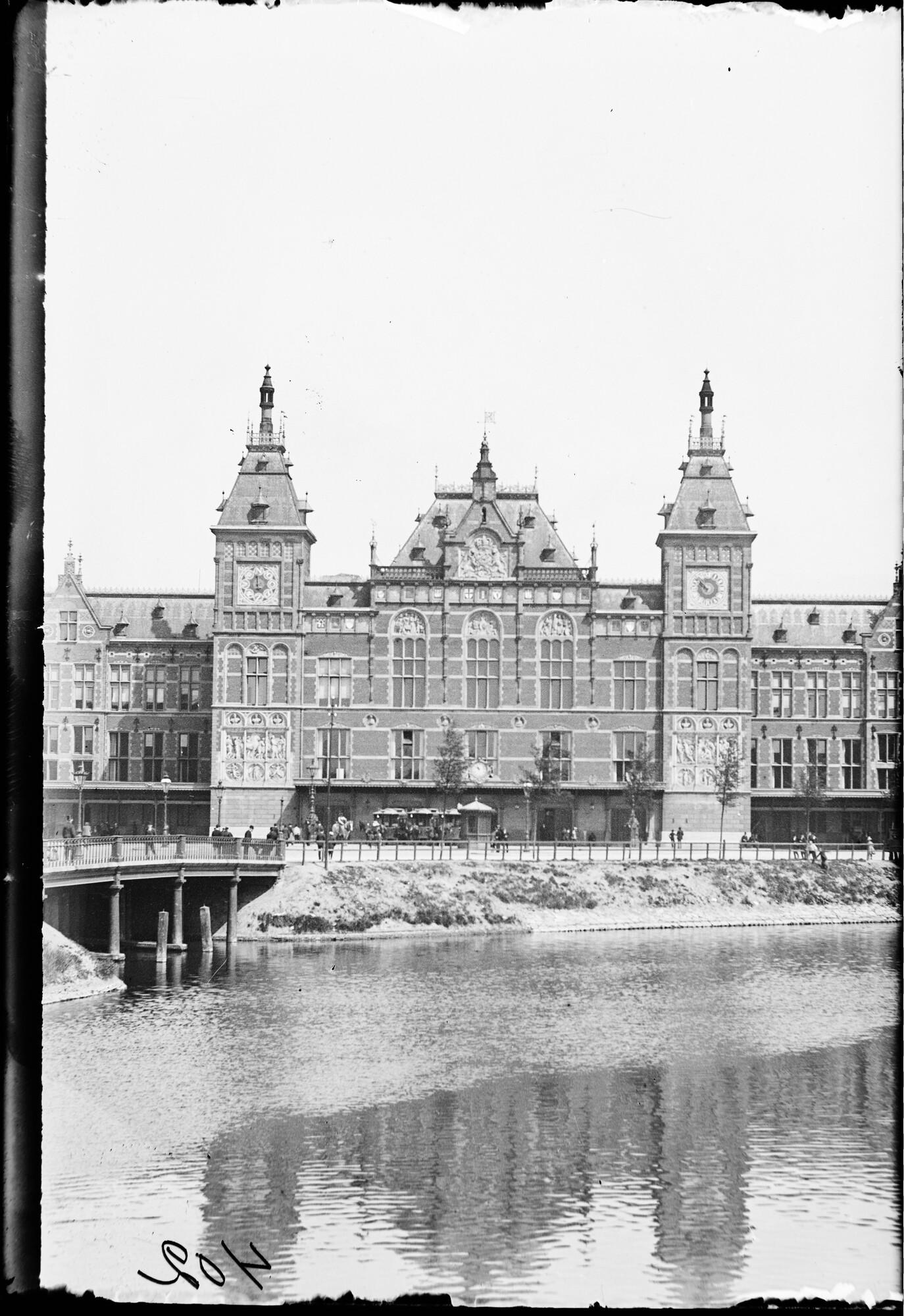 Glasnegatief van het Centraal Station te Amsterdam, ...
