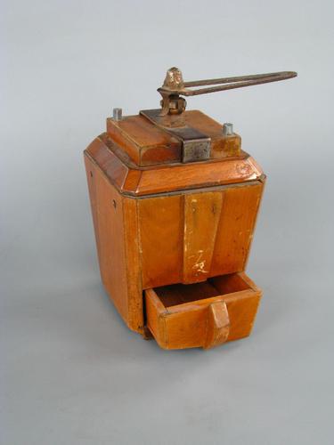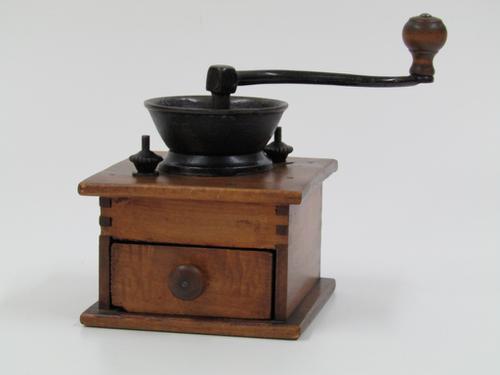 Houten schootkoffiemolen.
