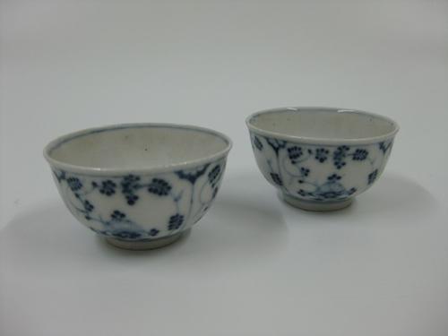 Twee porseleinen kommen met zwiebelmunster decor.