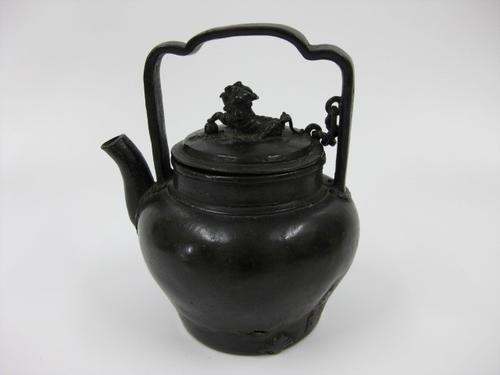 Theepot, brons, met draakachtige hond op deksel