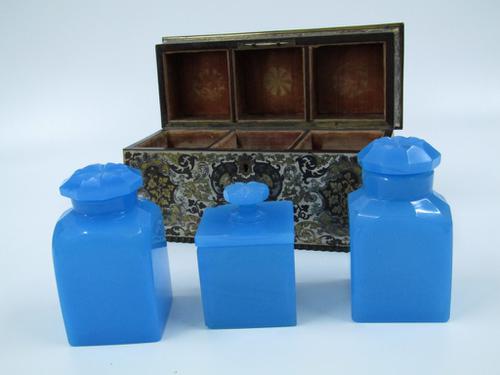 Theekist, bekleed met ivoor voorzien van inlegwerk.