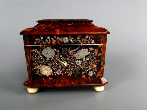 Theekist van schildpad met inlegwerk van parelmoer
