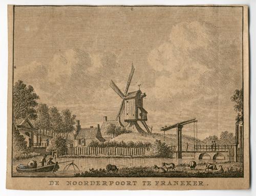 Gravure van de Noorderpoort in Franeker door J. Bult...