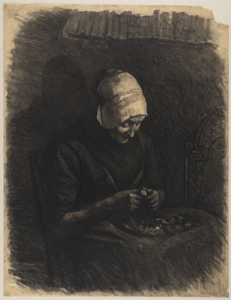 Aardappels schillende vrouw