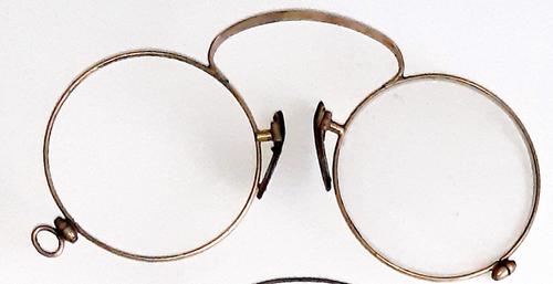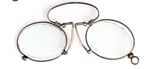 Bril metaal ovale glazen, opklapbare veren. 1880-1900