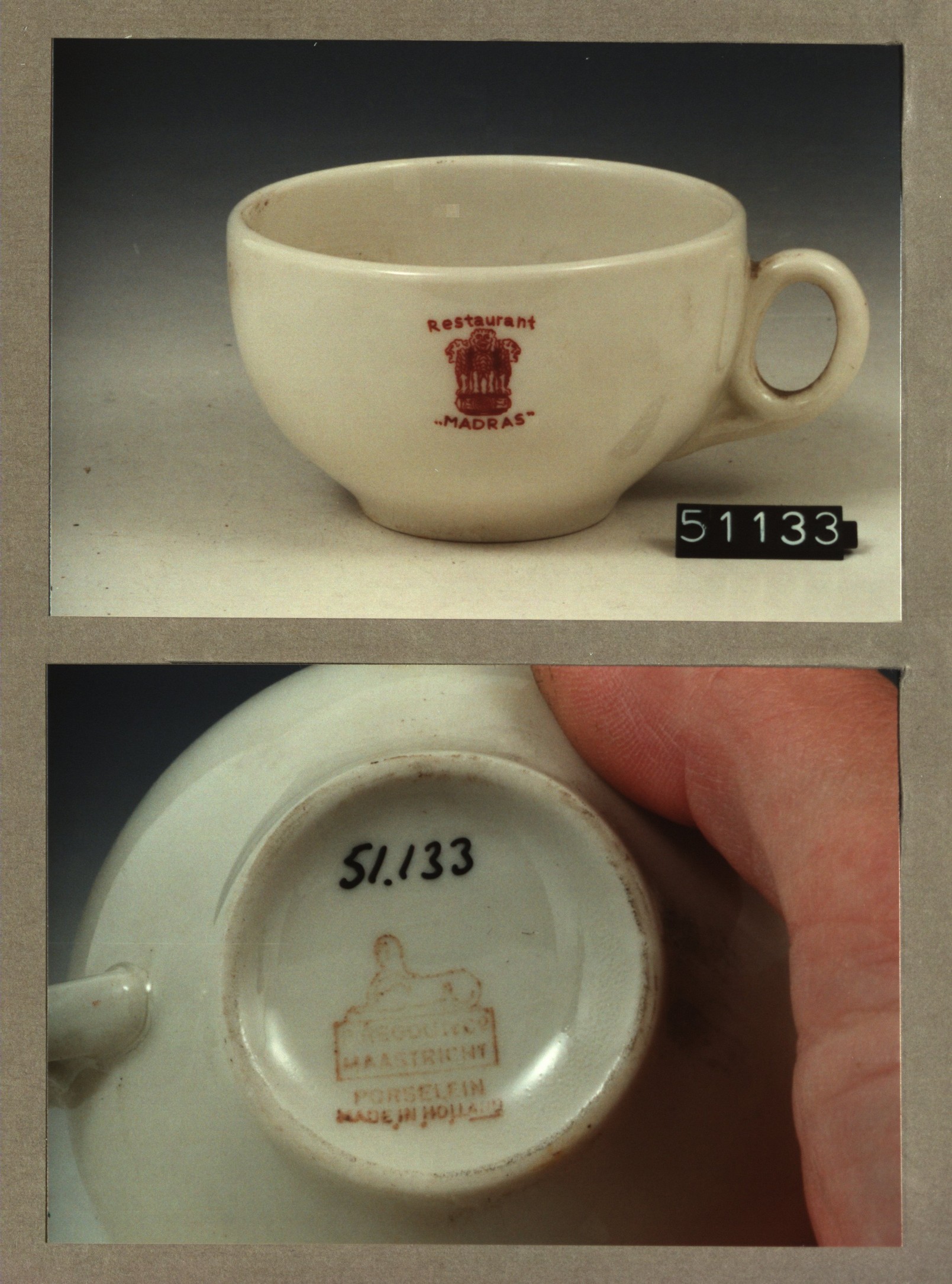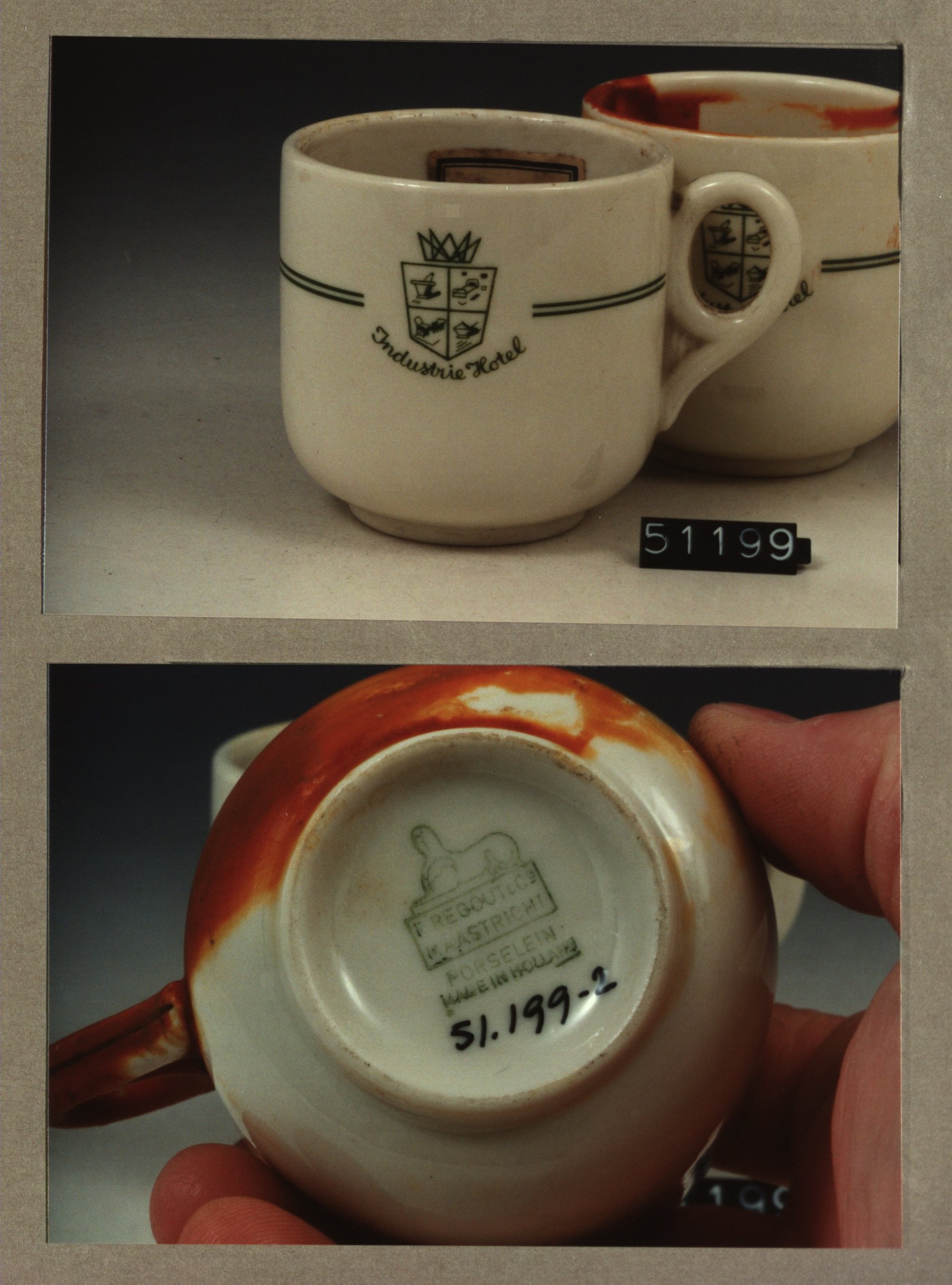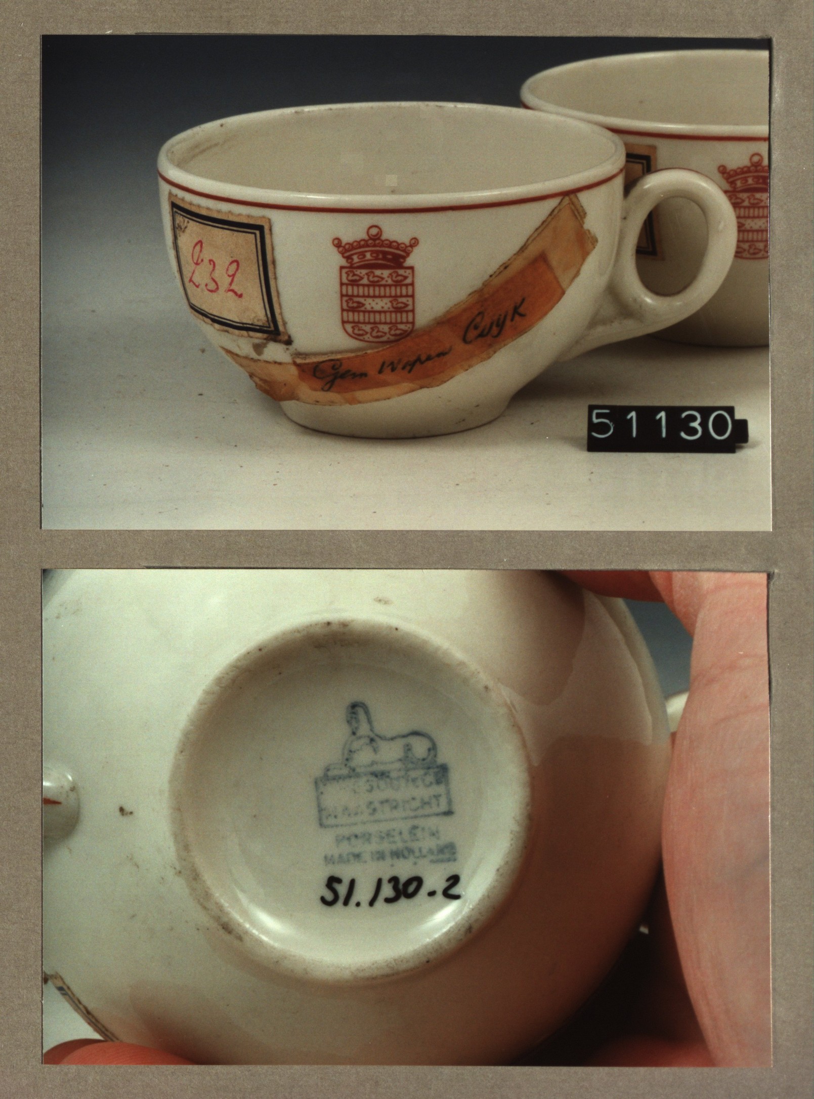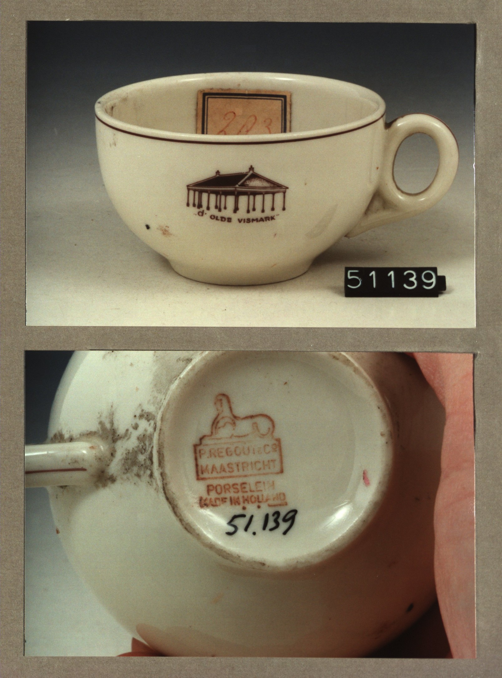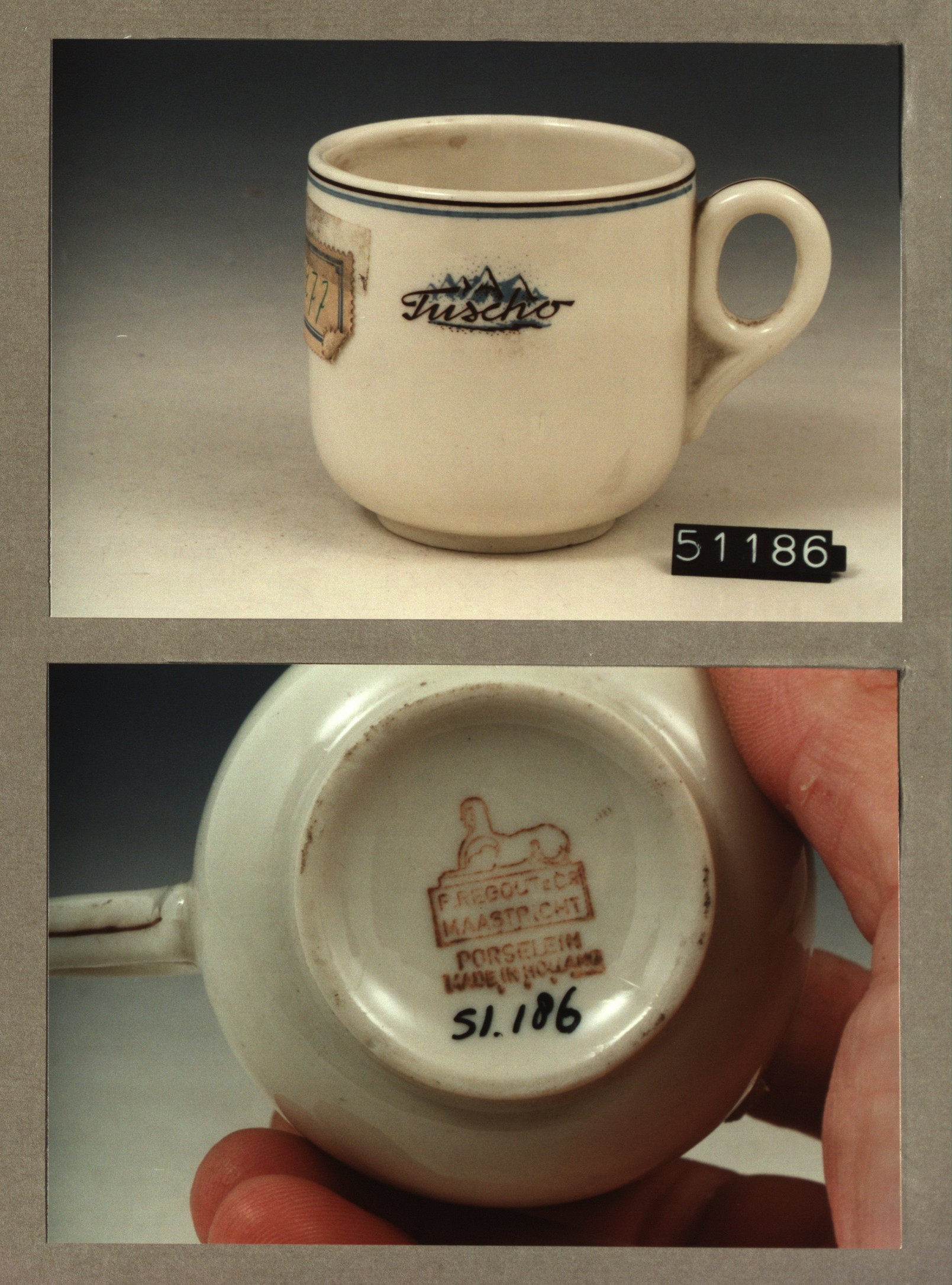 Kop met opschrift, model F met decor Tuscho ijssalon
