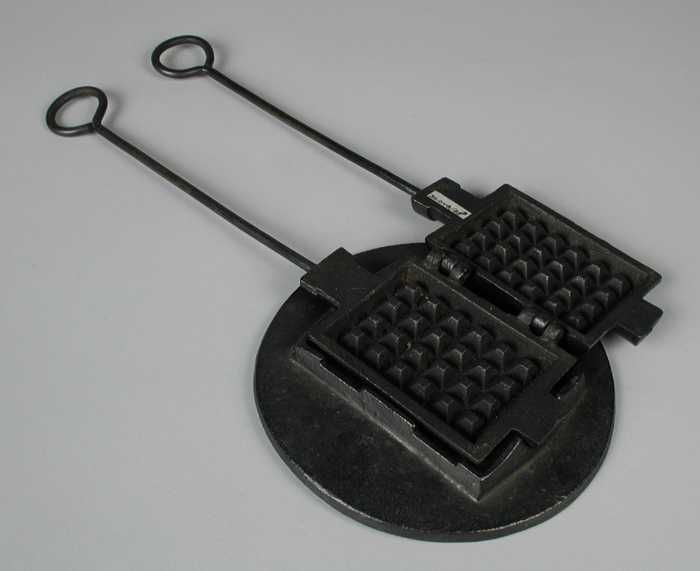Gietijzeren miniatuur wafelijzer met onderstel