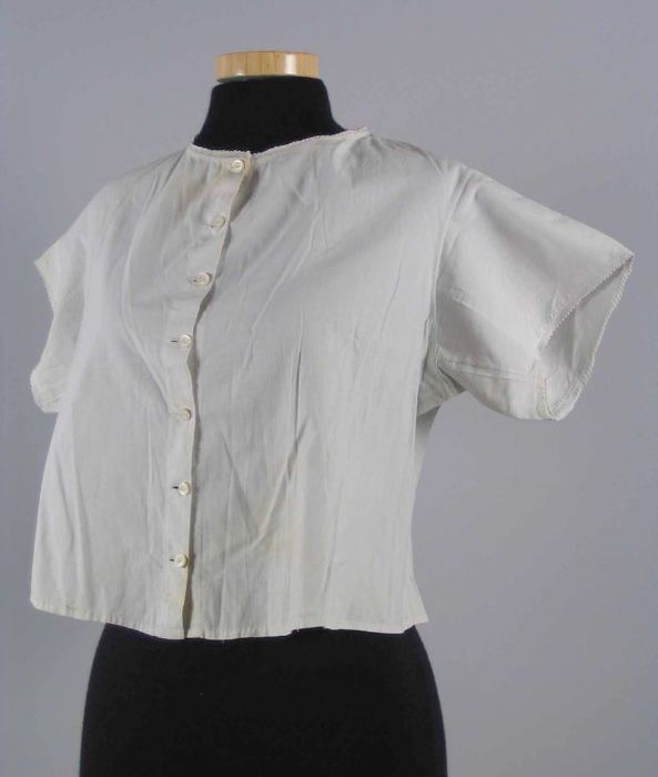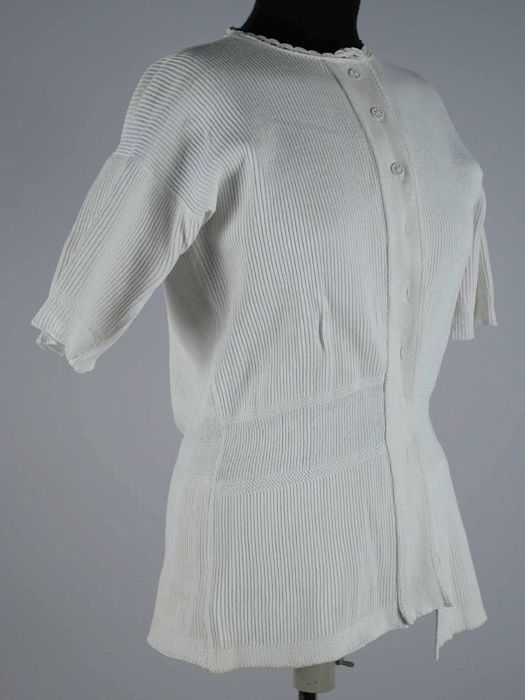 Wit katoenen onderlijfje, handgebreid, korte mouwtjes