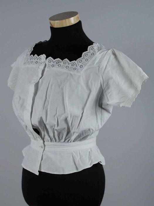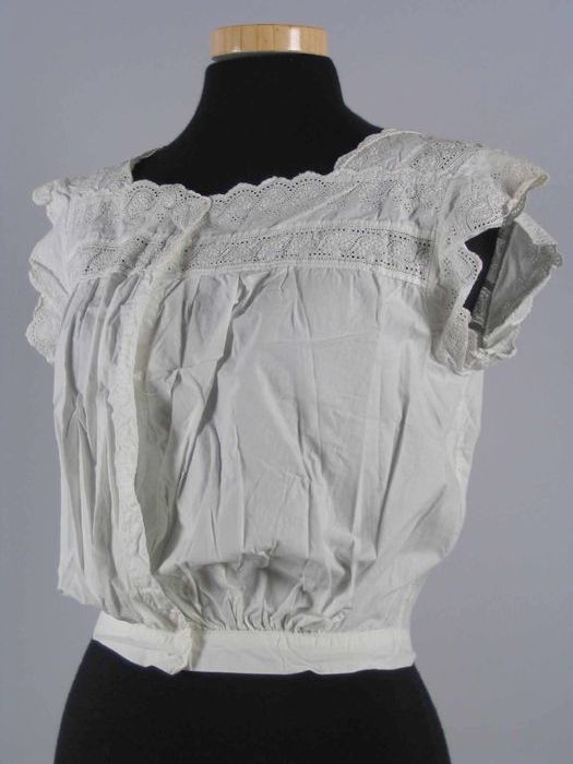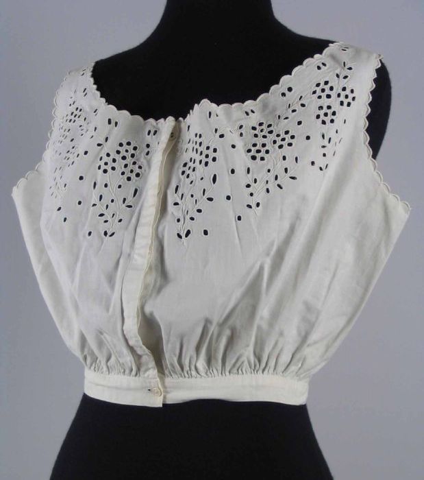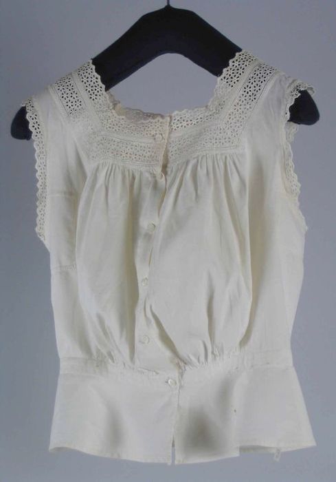 Wit onderlijfje met brede broderierand, vierkante ha...