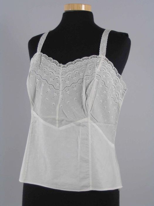 Wit onderlijfje met Engels borduurwerk, boothals, kn...