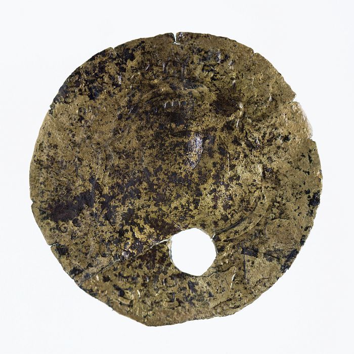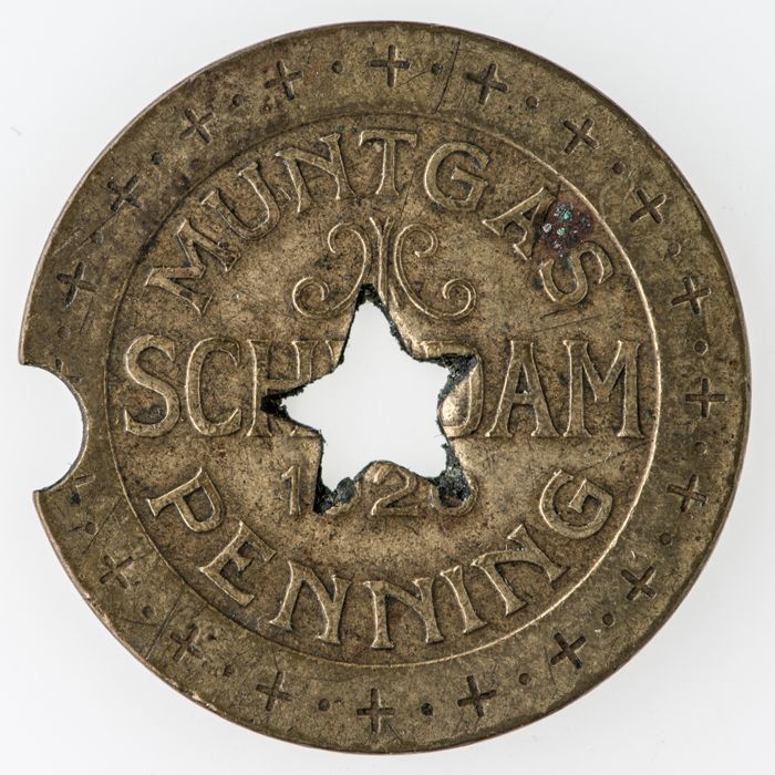 Hartvormige geelkoperen penning van de hondenbelasti...