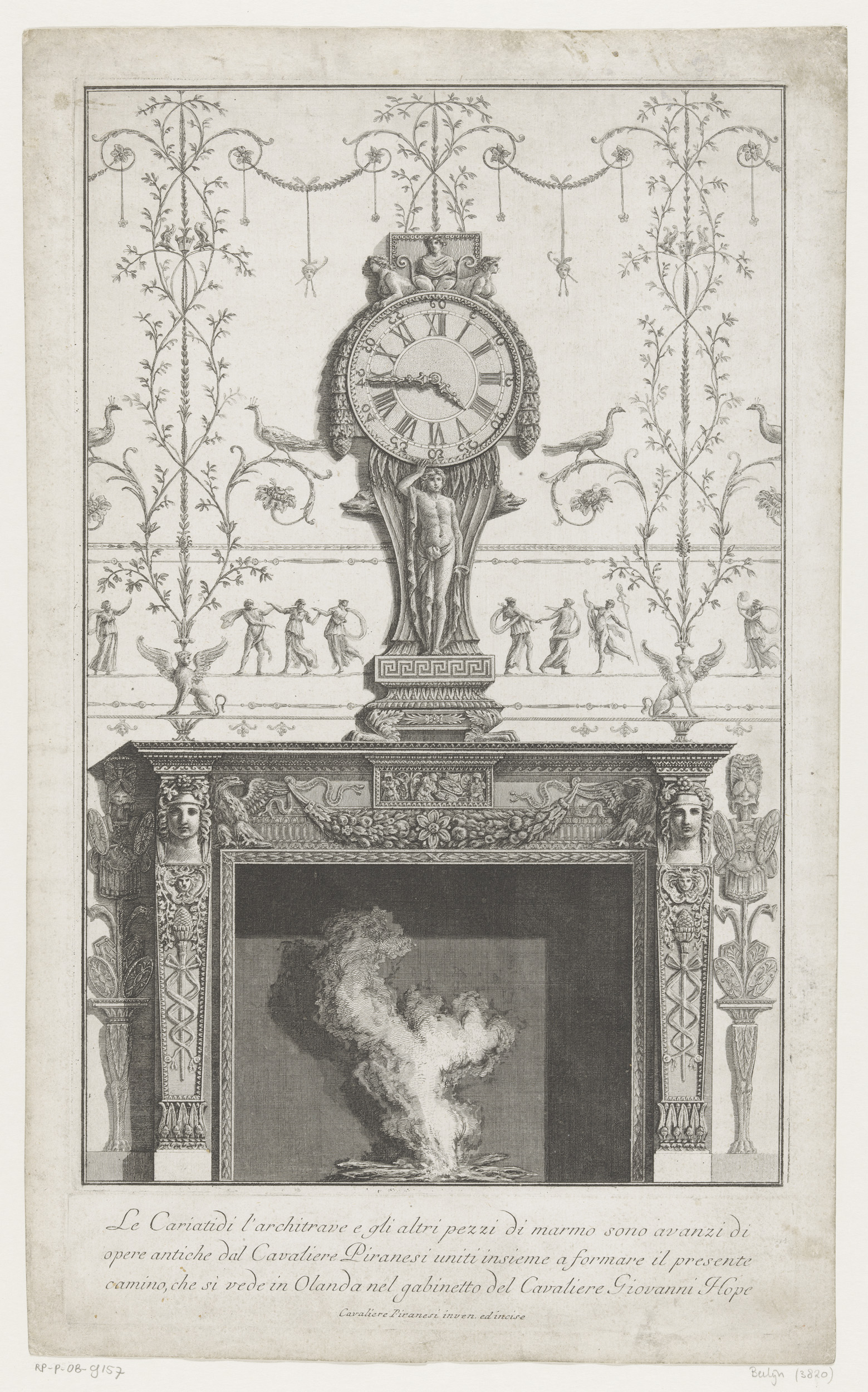 Ornamentele vaas in ovale wandnis, op een fries met ...
